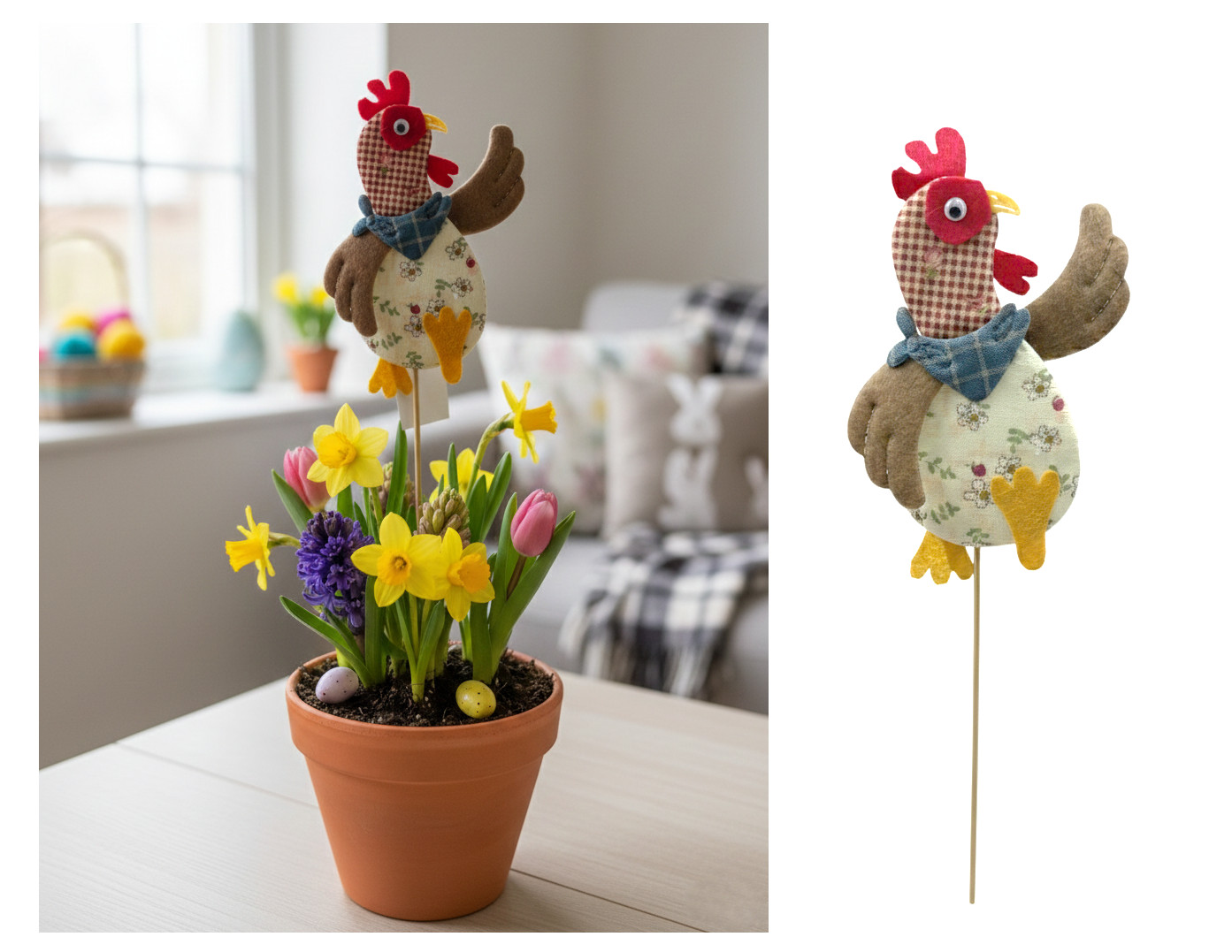 Dekoracja wielkanocna KURA na piku materiałowa 35x10,5 cm
