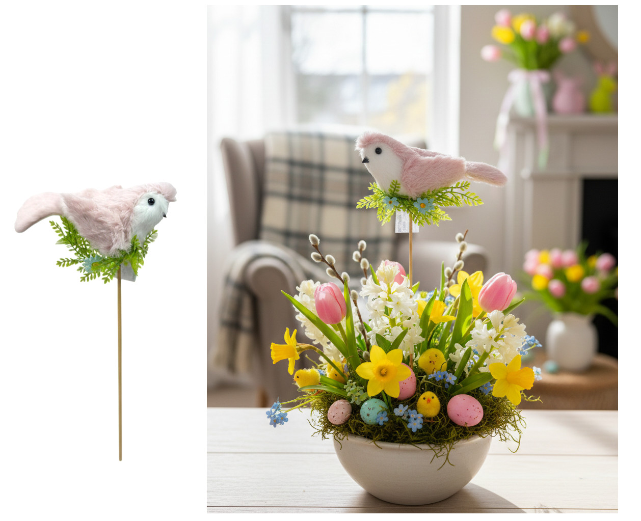 Dekoracja wielkanocna PTASZEK na piku 33x17x8 cm MIX KOLOR