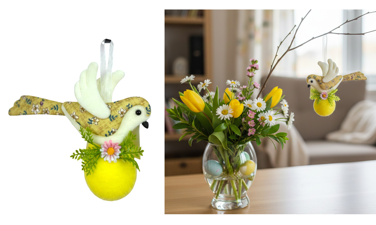 Dekoracja zawieszka wielkanocna PTASZEK i JAJKO 17x15x5 cm
