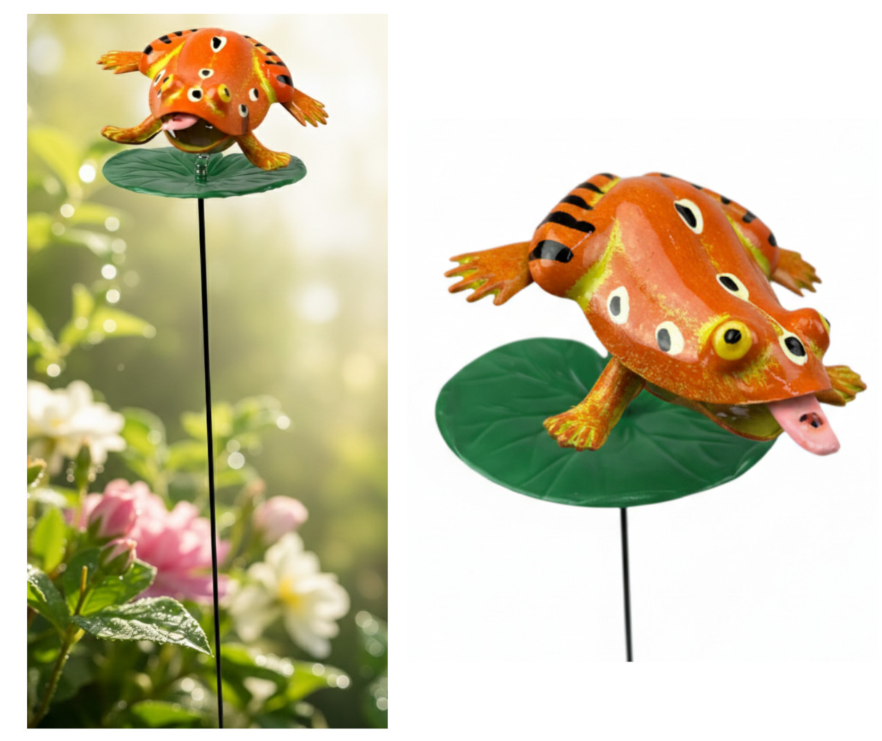 Ozdoba plastikowa ŻABA na liściu na metalowym PIKU 18x9,5x9 cm pik 45 cm