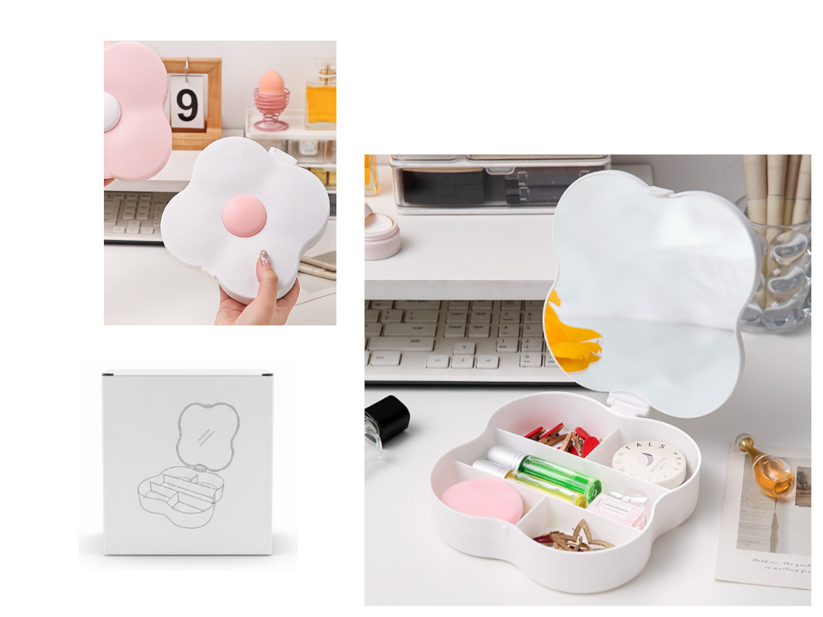 Pojemnik, organizer na kosmetyki z lusterkiem KWIATEK 16x15x4,5 cm BIAŁY