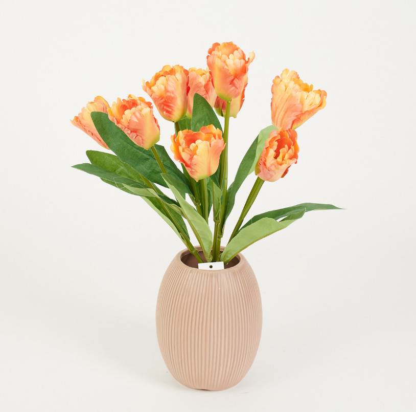 Bukiet TULIPAN PAPUZI wys. 44 cm 9 łodyg (9 kwiatów 6x4,5 cm) KORALOWY
