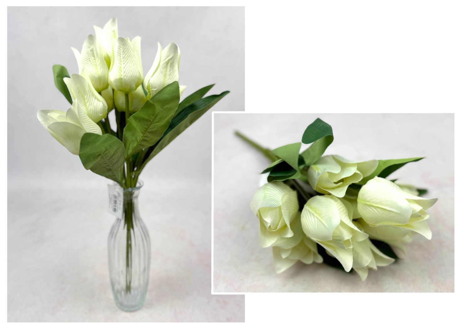 Bukiet TULIPAN PAPUZI wys. 44 cm 9 łodyg (9 kwiatów 6x4,5 cm) BIAŁY