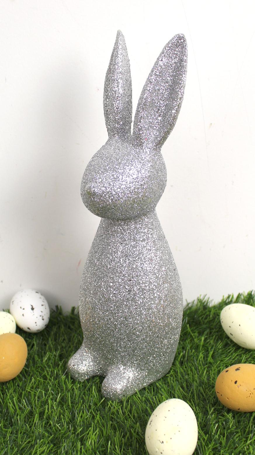 Królik, zając plastik 28x10x8 cm - BROKAT SREBRNY