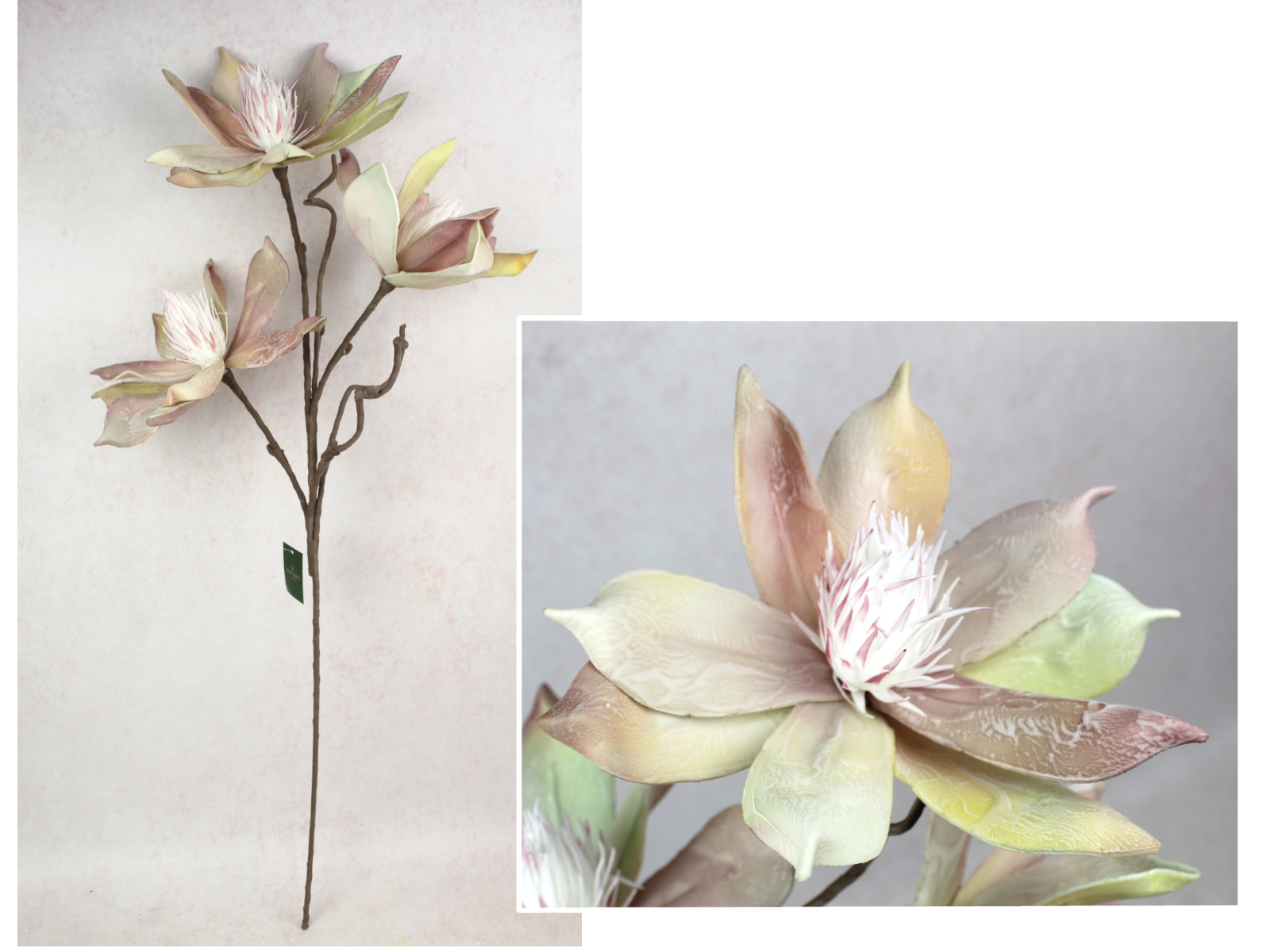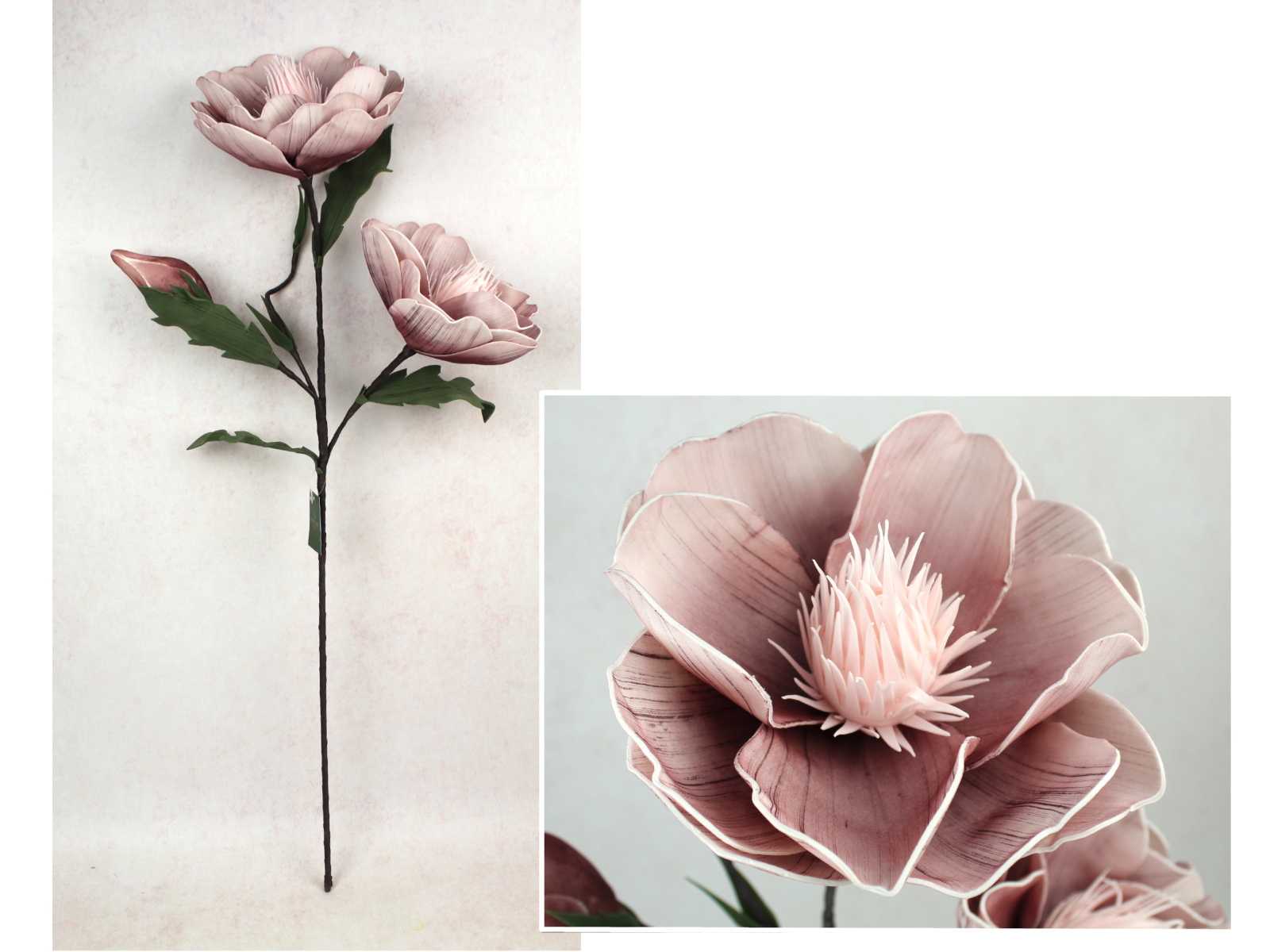 Kwiat piankowy MAGNOLIA wys. 85 cm (2 kwiaty 19x8 cm + PĄK) BRUDNY RÓŻ