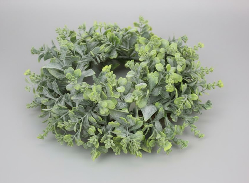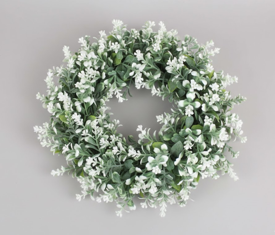 Wianek ozdobny zielony BIELONY z białym dodatkiem 24 cm