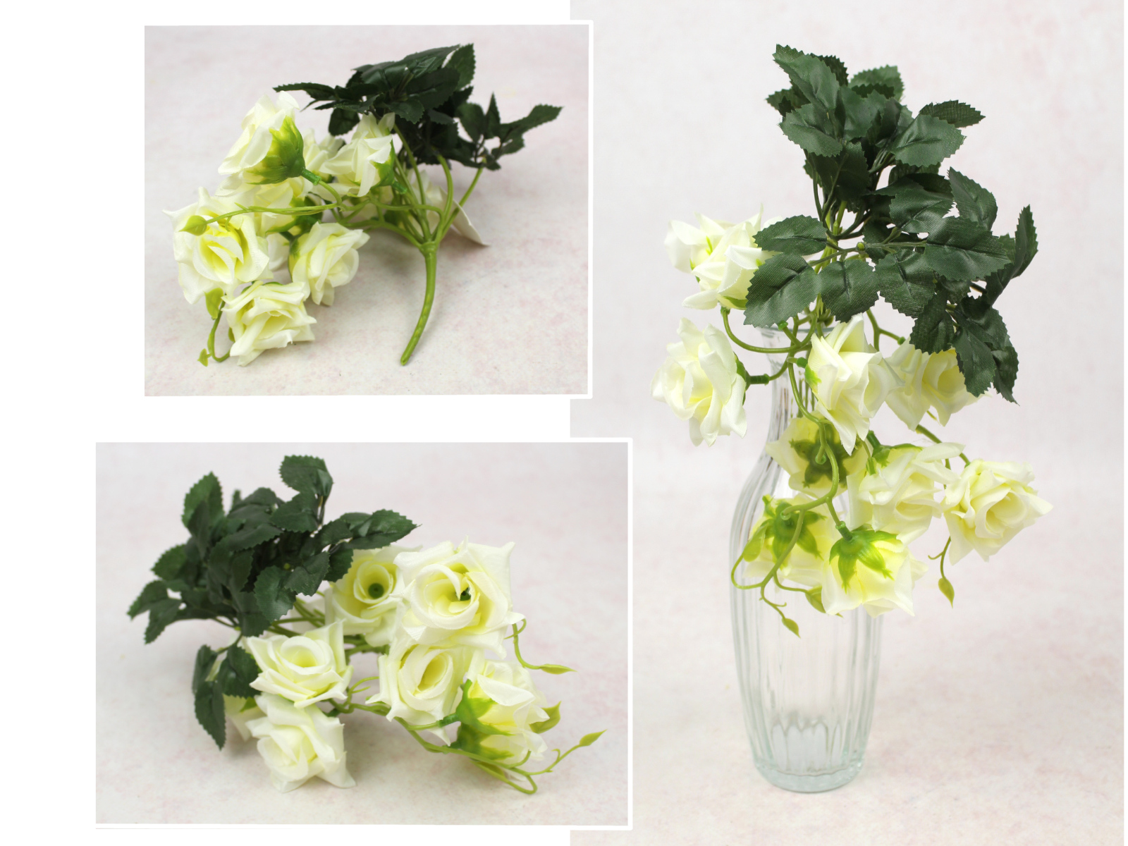 Bukiet, bukiecik RÓŻA wys 20 cm, 11 łodyg (10 kwiatów 6x2,5 cm) BIAŁA