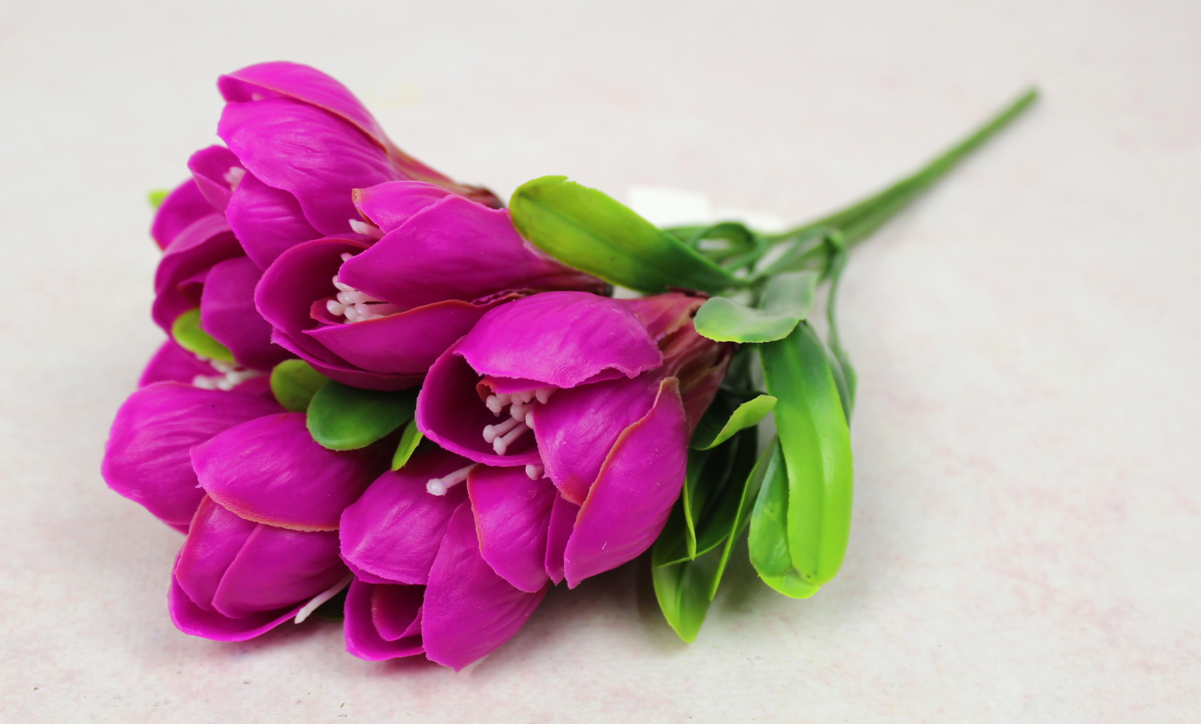 Bukiet KROKUS gumowy 32 cm, 6 łodyg (6 kwiatów 7x5 cm) RÓŻOWY ciemny