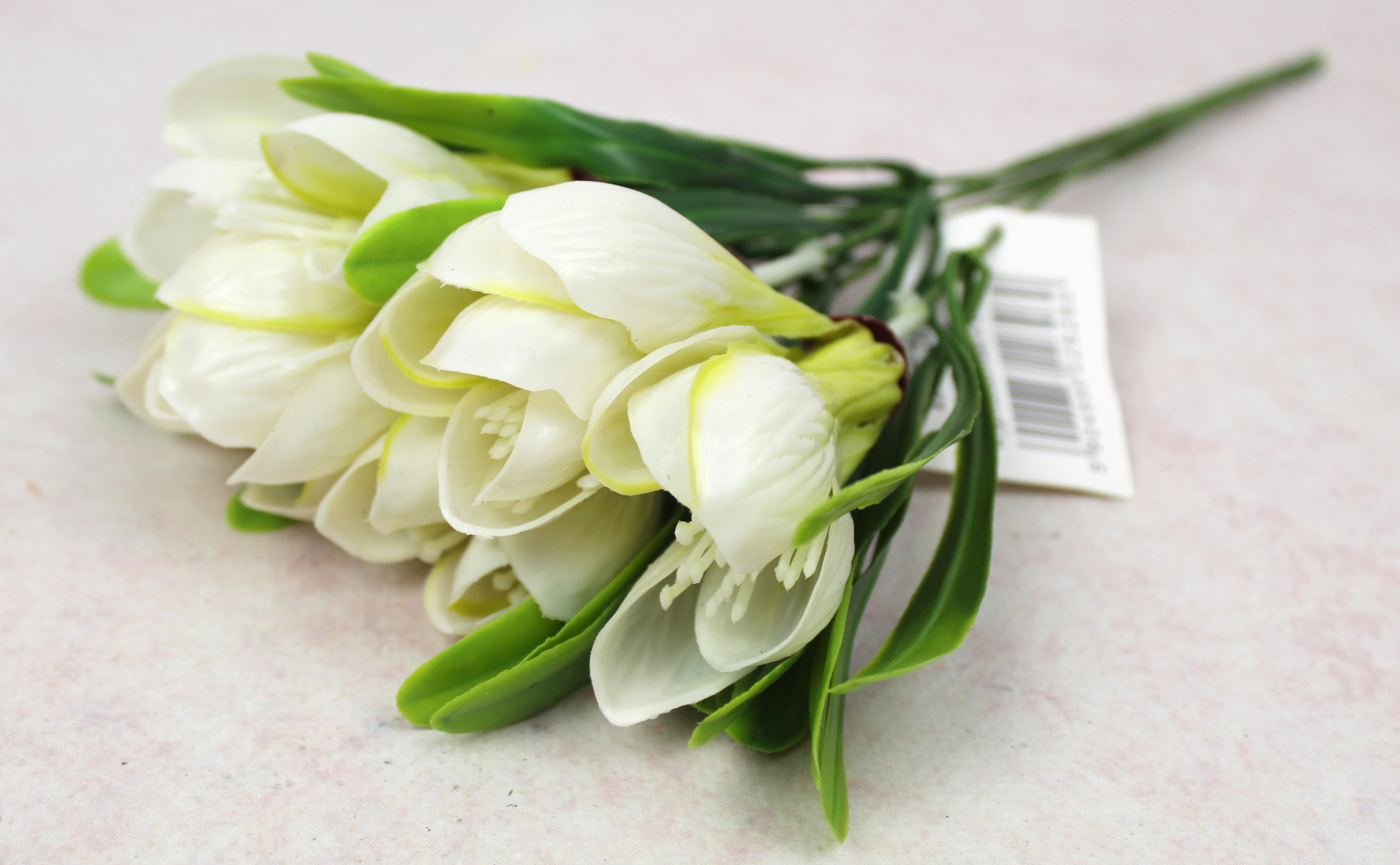 Bukiet KROKUS gumowy 32 cm, 6 łodyg (6 kwiatów 7x5 cm) BIAŁY