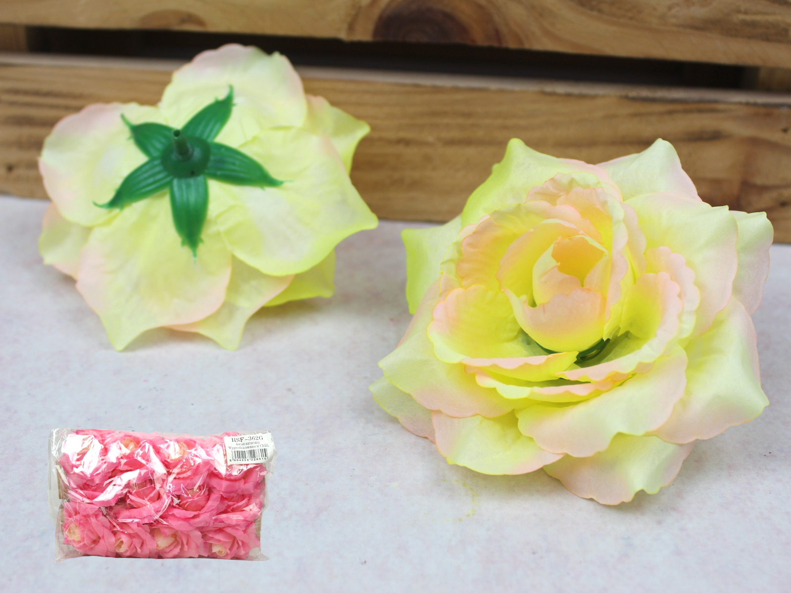 Główka RÓŻA 10x5 cm ŻÓŁTO-RÓŻOWA cieniowana - 1 szt