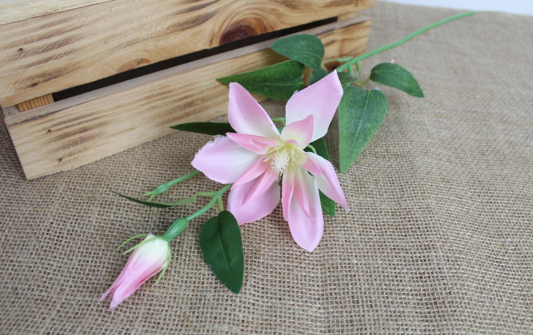 Kwiat KLEMATIS wys. 57 cm (kwiat 12x4 cm, pąk) - RÓŻOWY JASNY
