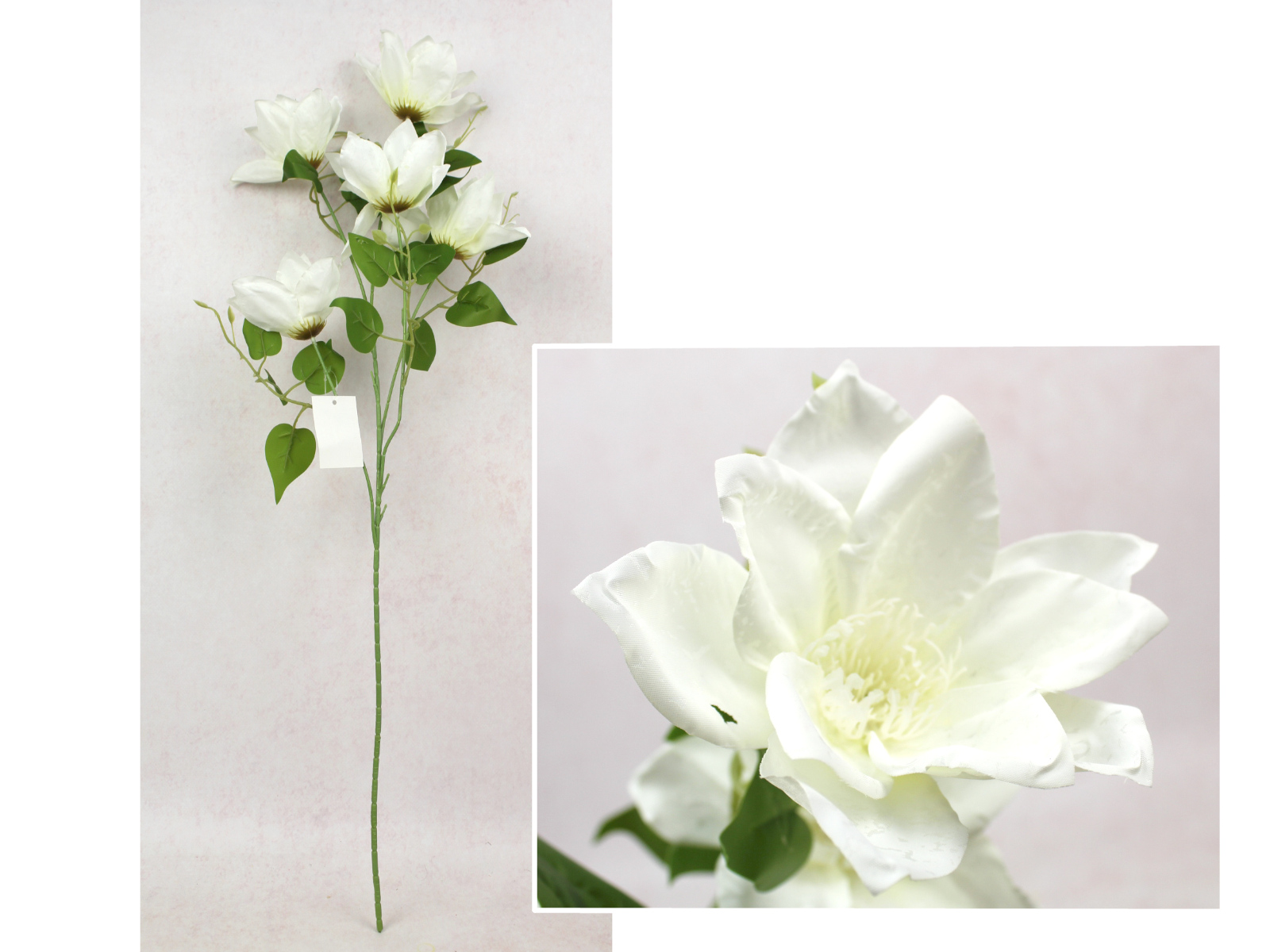 Kwiat KLEMATIS wys. 73 cm, 5 ramion (5 kwiatów 14x4 cm) BIAŁY