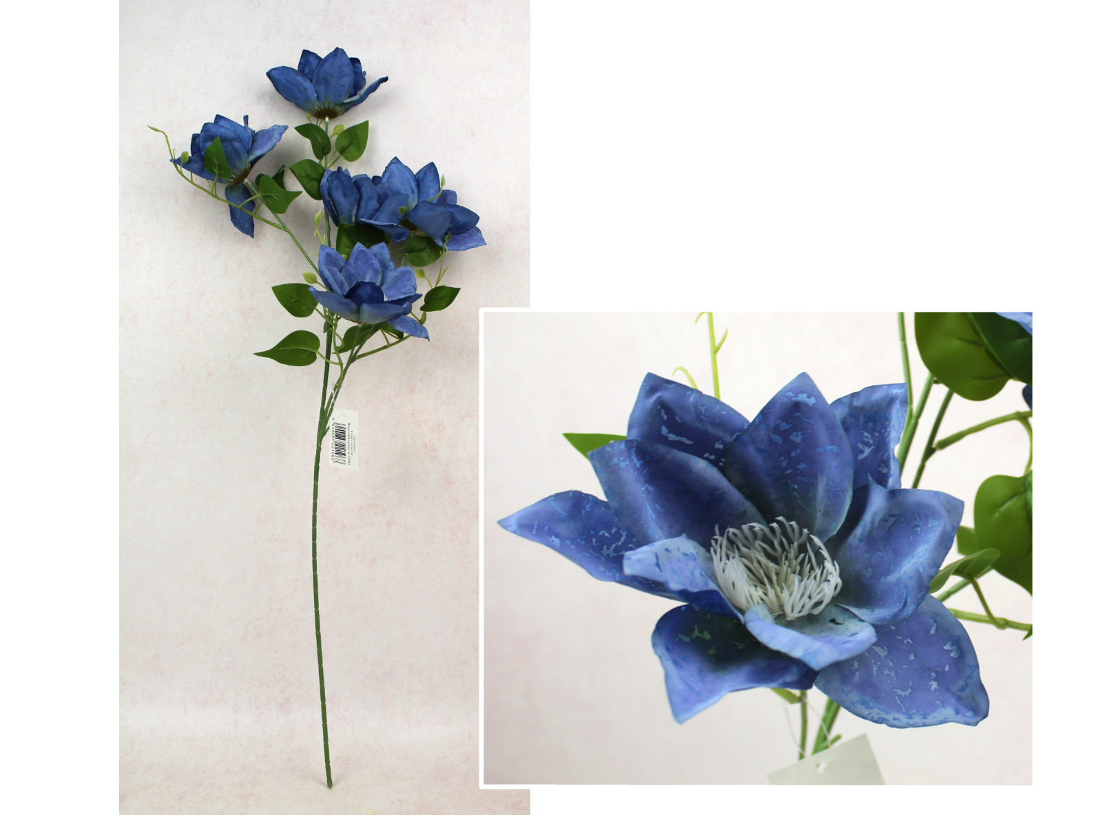 Kwiat KLEMATIS wys. 73 cm, 5 ramion (5 kwiatów 14x4 cm) NIEBIESKI