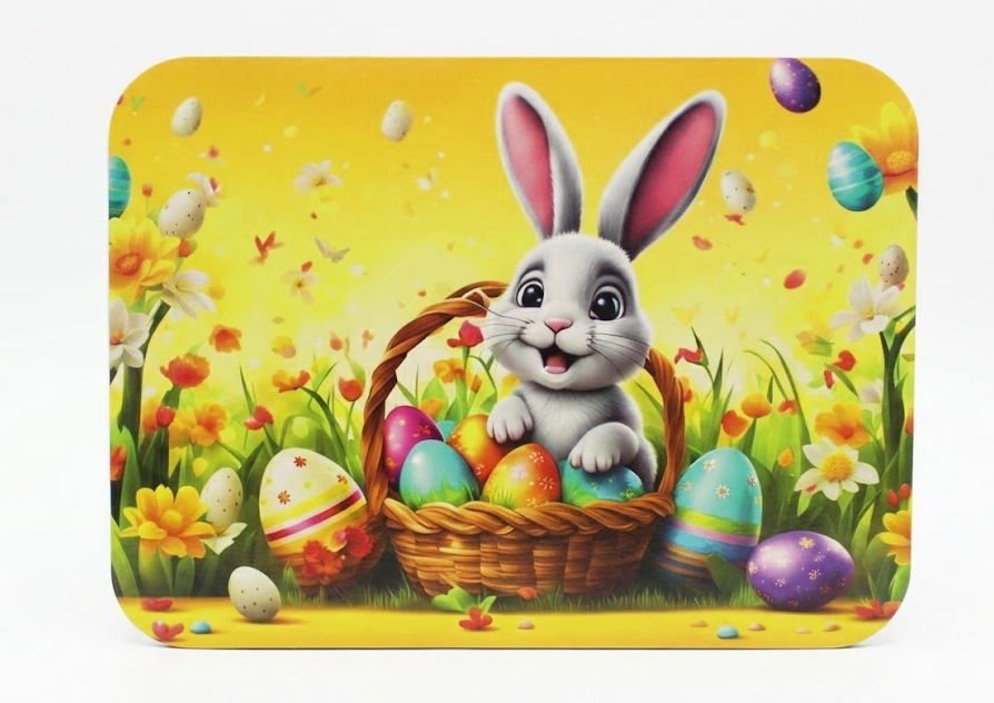 Mata stołowa 40x30 cm BAJKOWY ZAJĄC W KOSZYKU Z PISANKAMI NA ŻÓŁTYM TLE