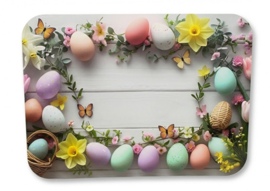 Mata stołowa 40x30 cm PISANKI PASTELOWE, ŻONKILE NA DREWNIANYM TLE