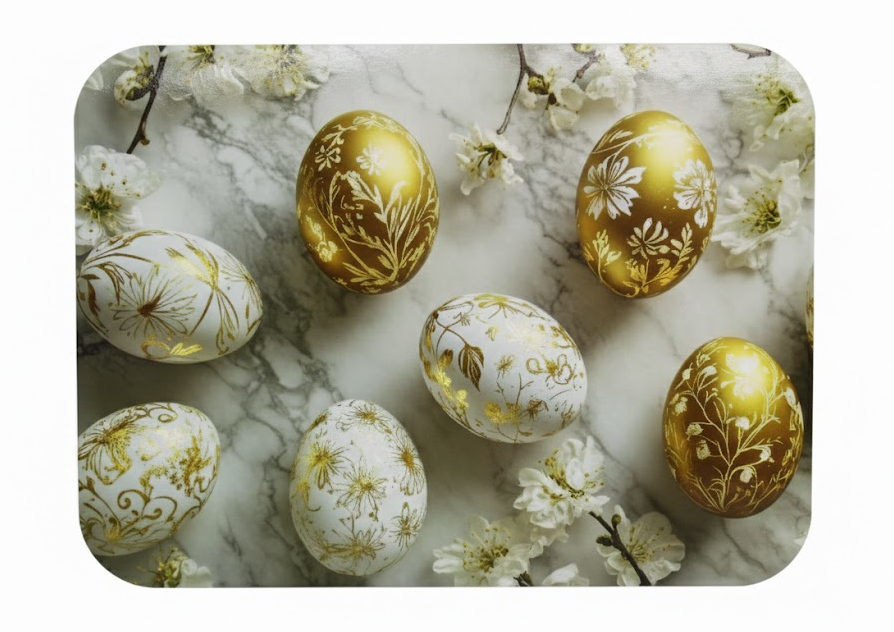 Mata stołowa 40x30 cm PISANKI BIAŁO ZŁOTE NA MARMUROWYM TLE