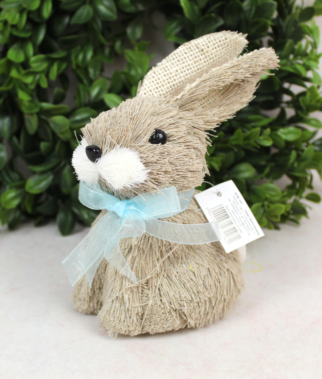 Dekoracja wielkanocna, zawieszka styropian-siano ZAJAC Z KOKARDĄ 85x25x12 cm