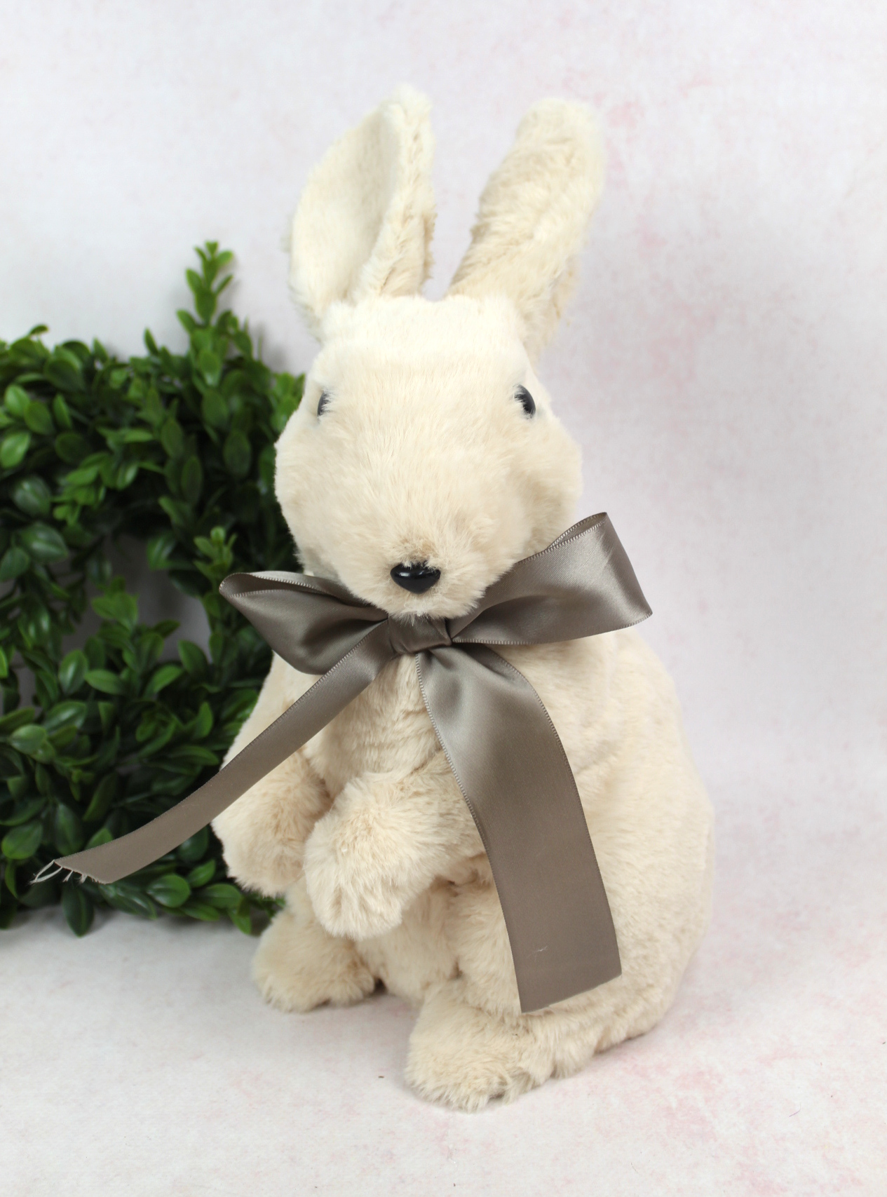 Dekoracja wielkanocna styropian-plusz ZAJAC z kokardą 26x18x12 cm beżowy