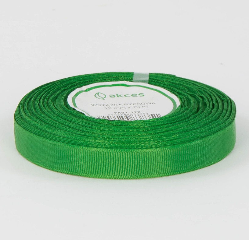 Wstążka rypsowa ZIELONA TRAWA 12 mm x 22,75m - 1 rolka