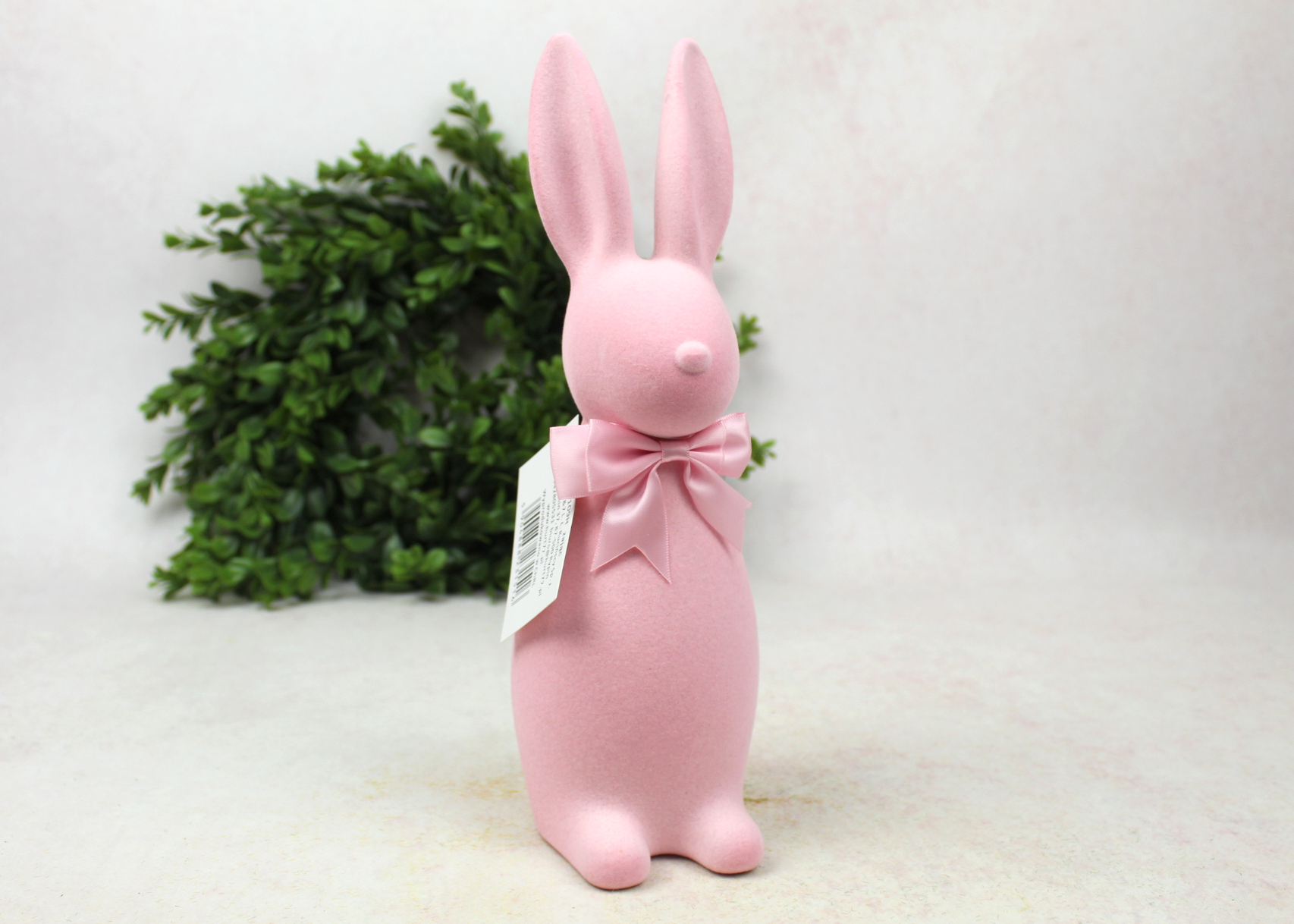Dekoracja wielkanocna plastikowy ZAJĄC flokowany 29x10x9 cm RÓŻOWY