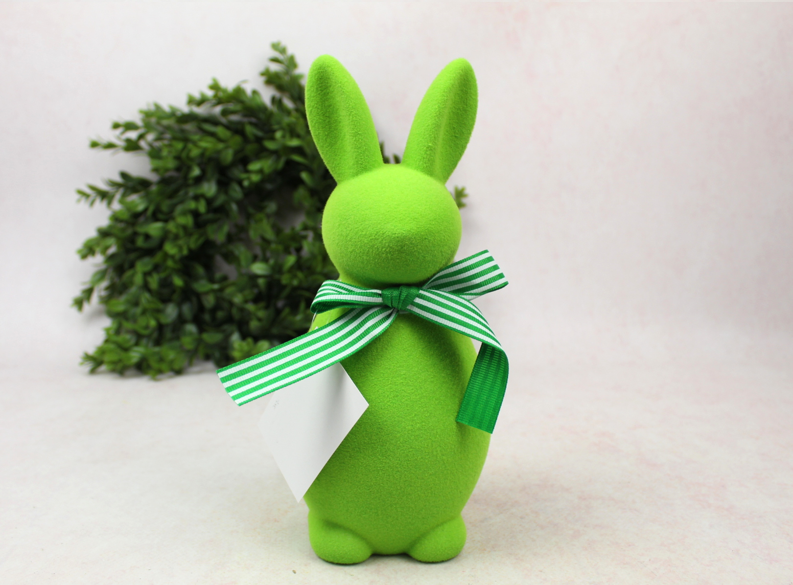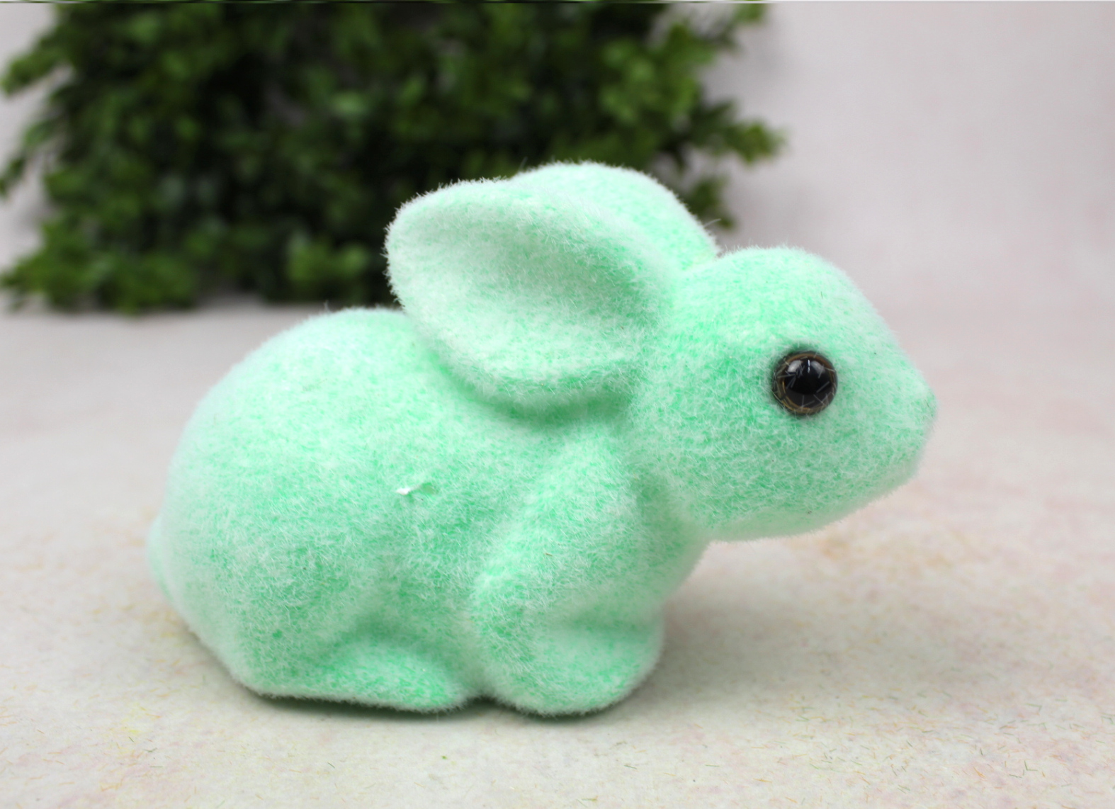 Dekoracja wielkanocna plastikowy ZAJĄC flokowany 25x11x10 cm ZIELONY