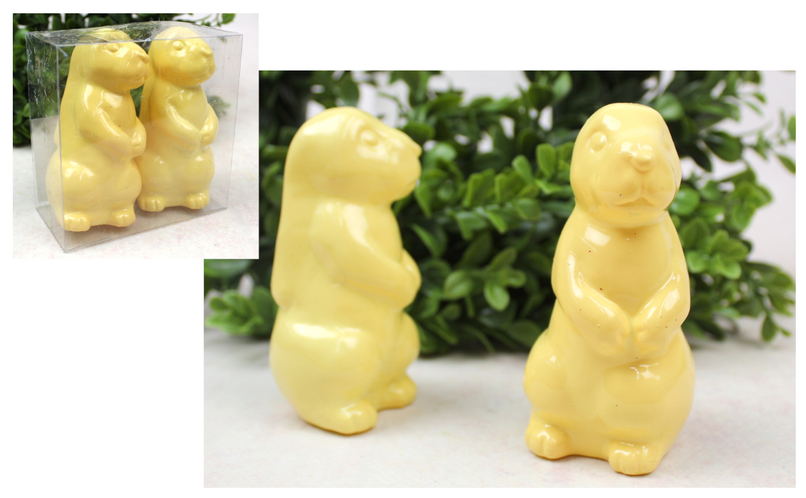 Dekoracja wielkanocna plastikowy ZAJĄC 10x5x5 cm ŻÓŁTY kpl. 2 szt