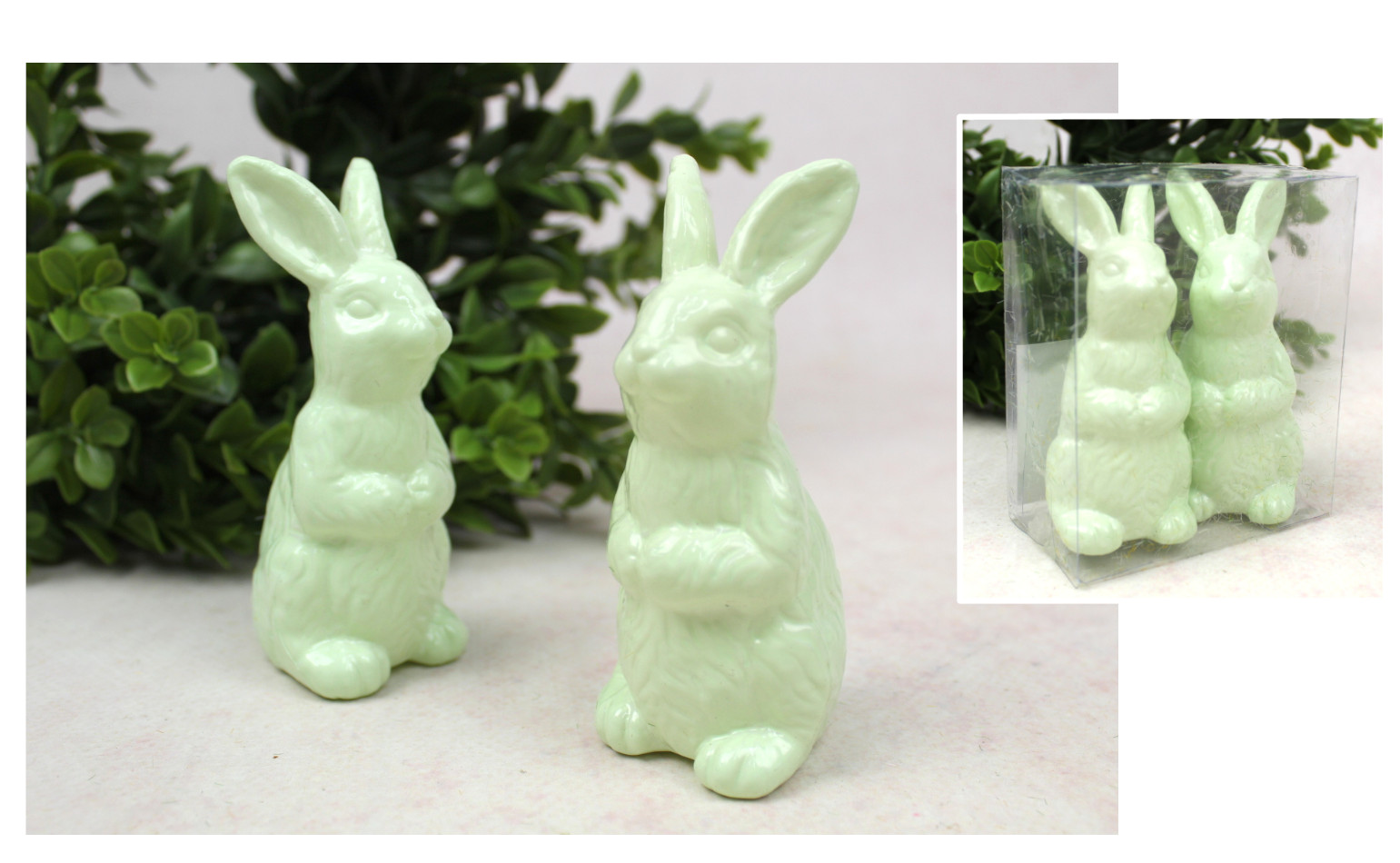 Dekoracja wielkanocna plastikowy ZAJĄC 10x5x5 cm ZIELONY kpl. 2 szt