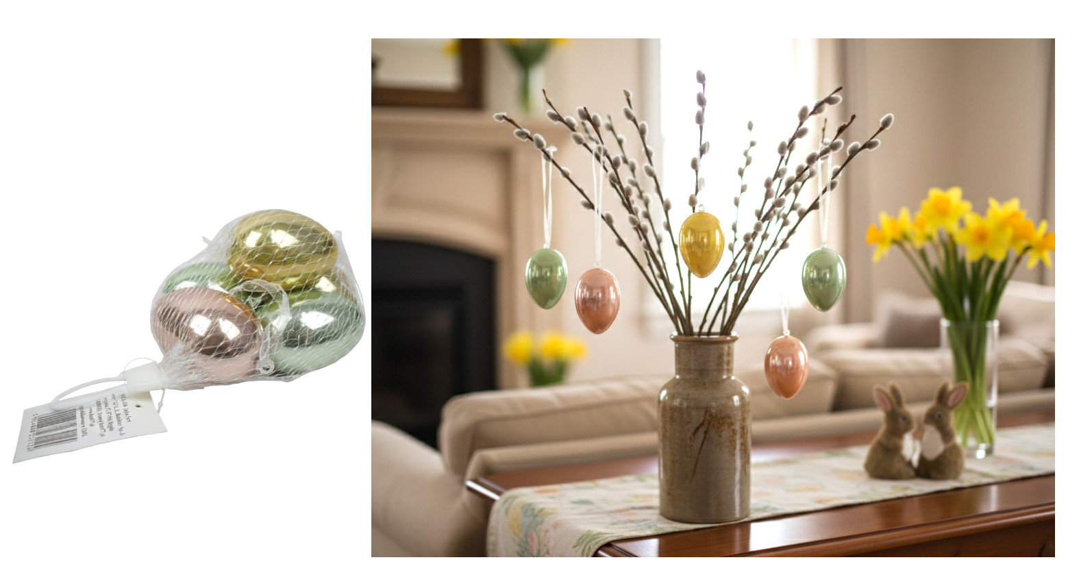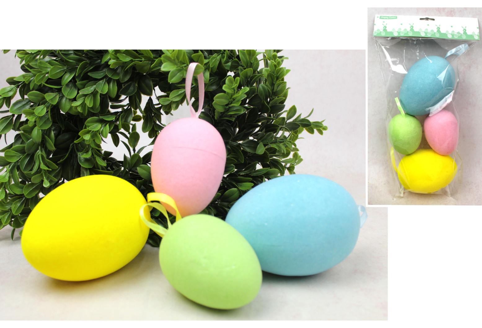 Dekoracja wielkanocna styropianowe flokowane JAJKA zawieszka 13x9/9x7 cm kpl 4 szt