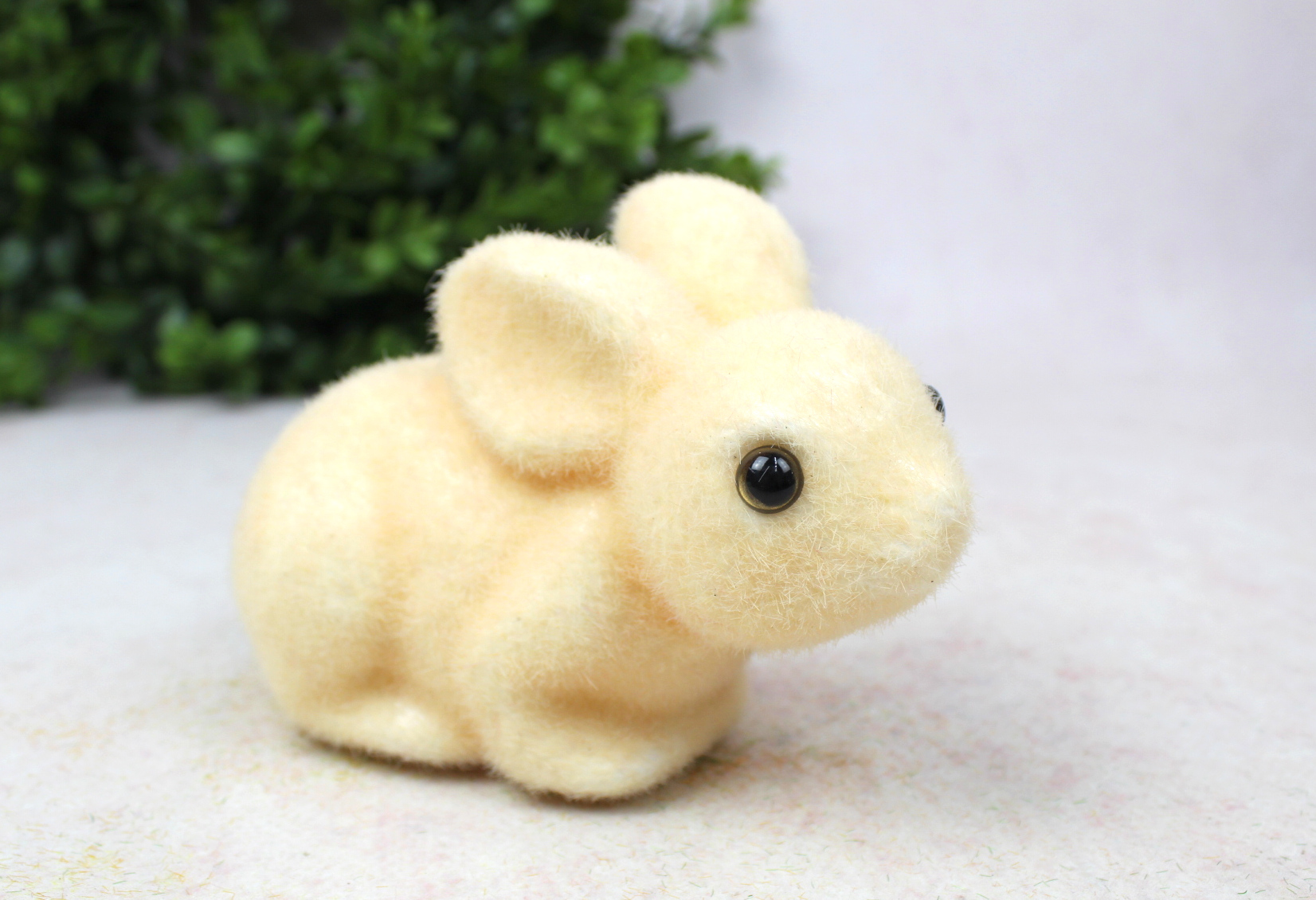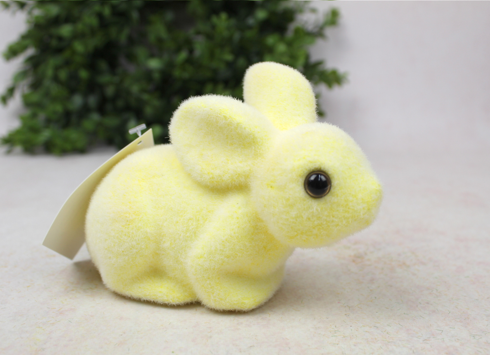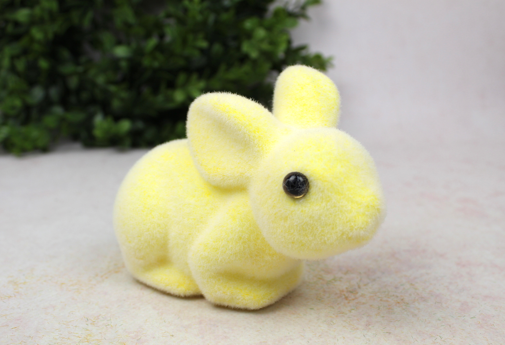 Dekoracja wielkanocna plastikowy ZAJĄC flokowany 25x11x10 cm ŻÓŁTY