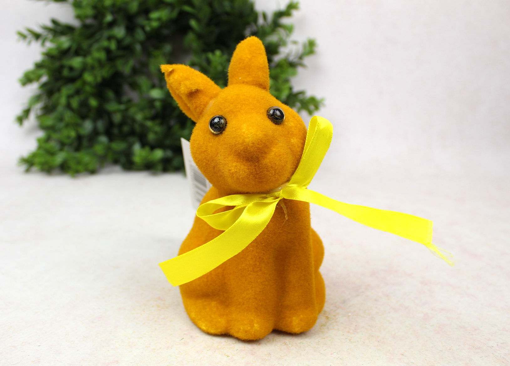 Dekoracja wielkanocna plastikowy ZAJĄC flokowany 29x10x9 cm ŻÓŁTY