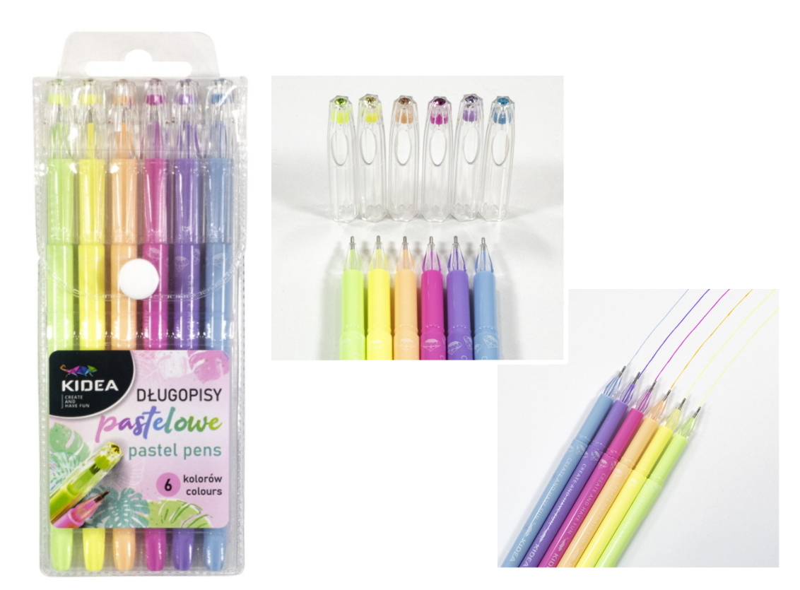 Długopisy pastelowe z kryształową końcówką 6 kolorów 15 cm