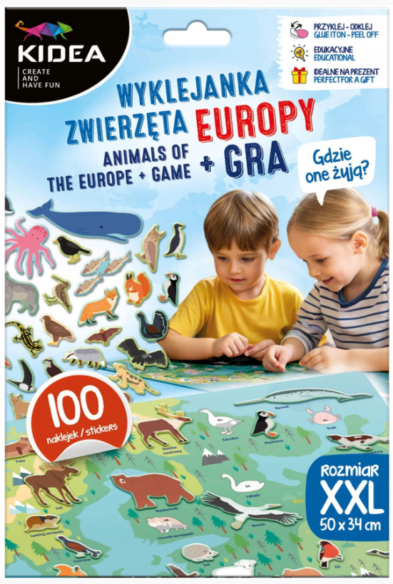 KIDEA Wyklejanka zwierzęta EUROPY + Gra 28x19 cm