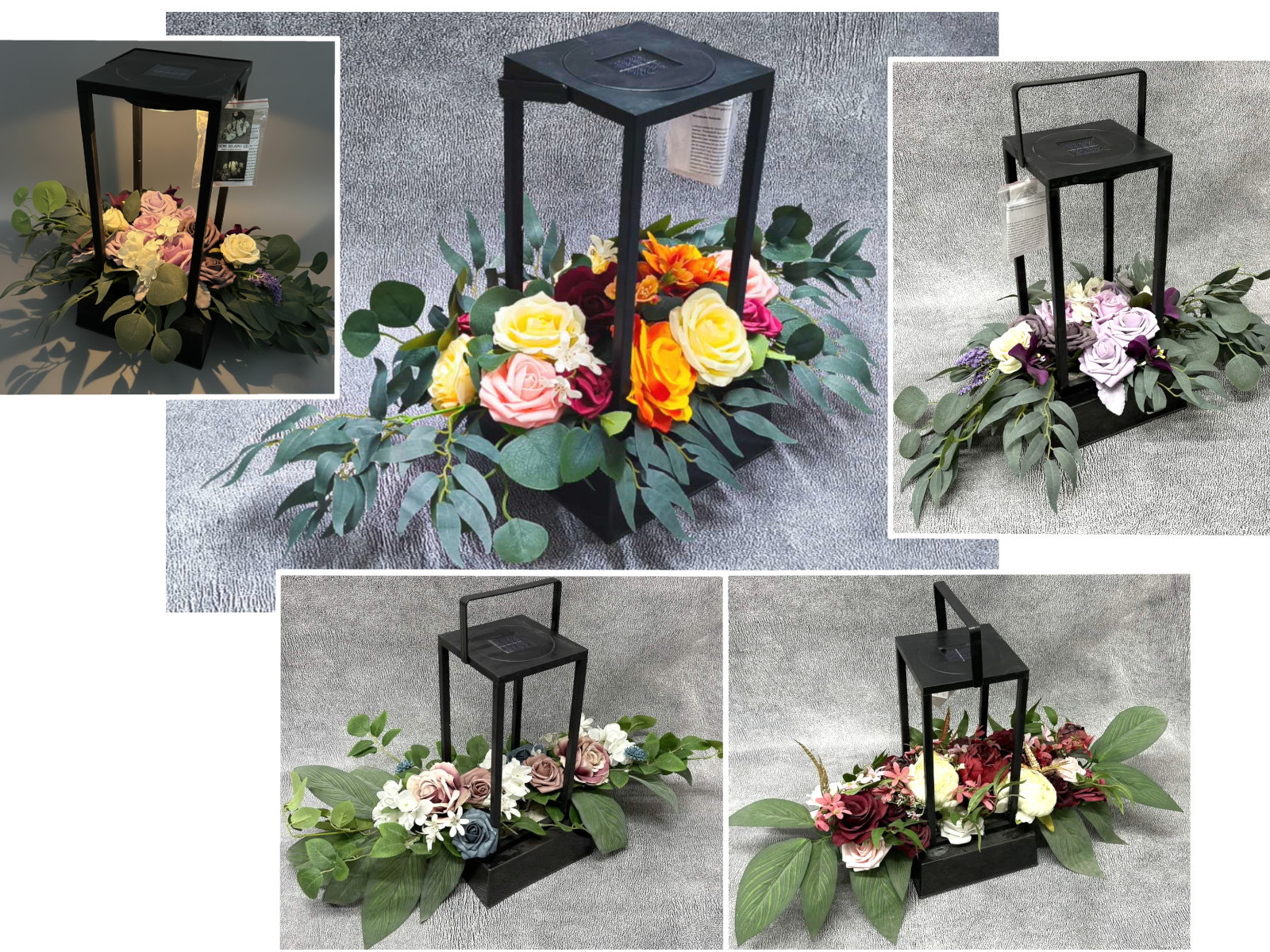 Stroik zalewany LATARNIA DUŻA SOLAR róża, lilia, dalia bluszcz MIX KOLOR (40x20x20 cm + 95 cm) ok. 3,9 kg