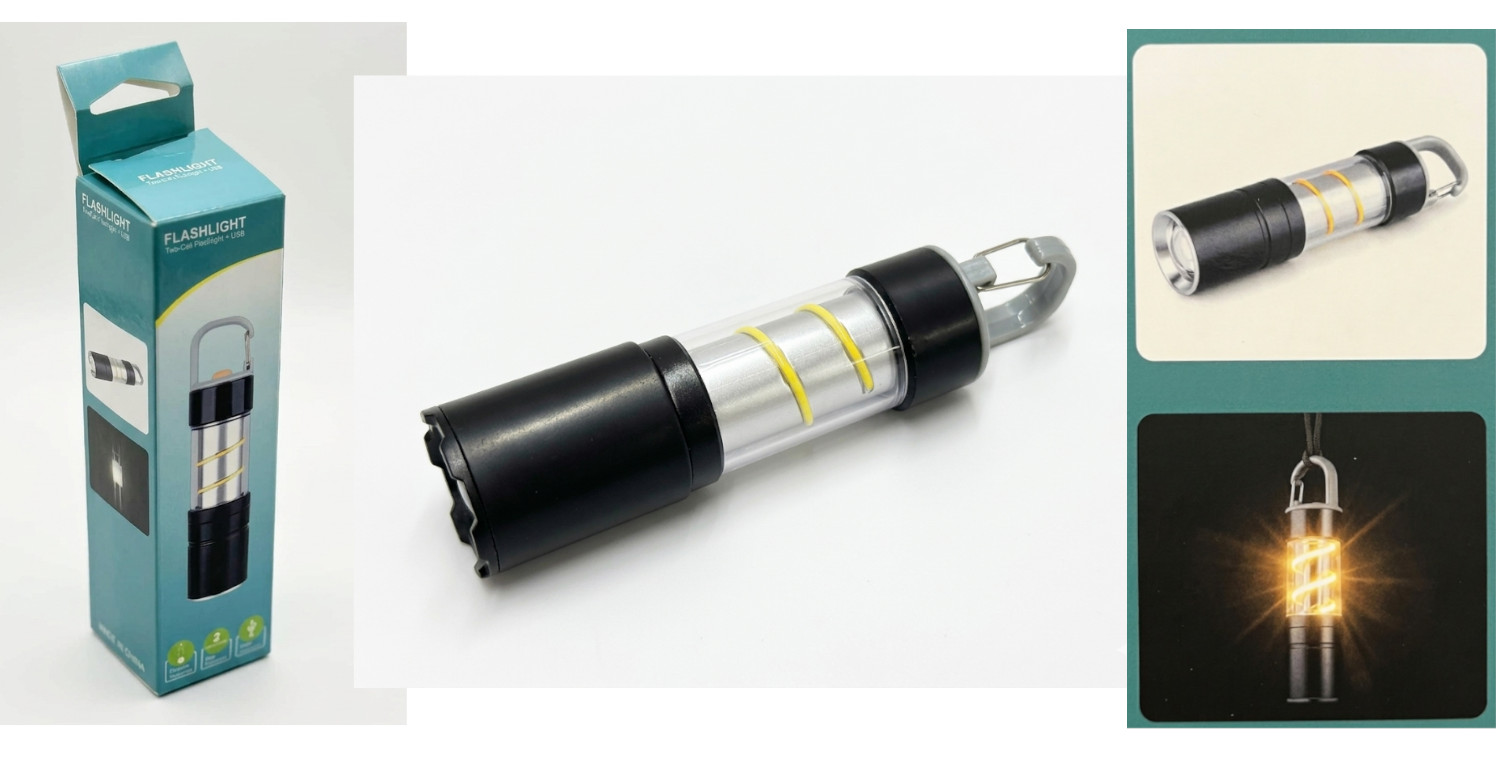 Latarka USB z akumulatorem, przenośna latarka LED lampa kempingowa 13x3,2 cm