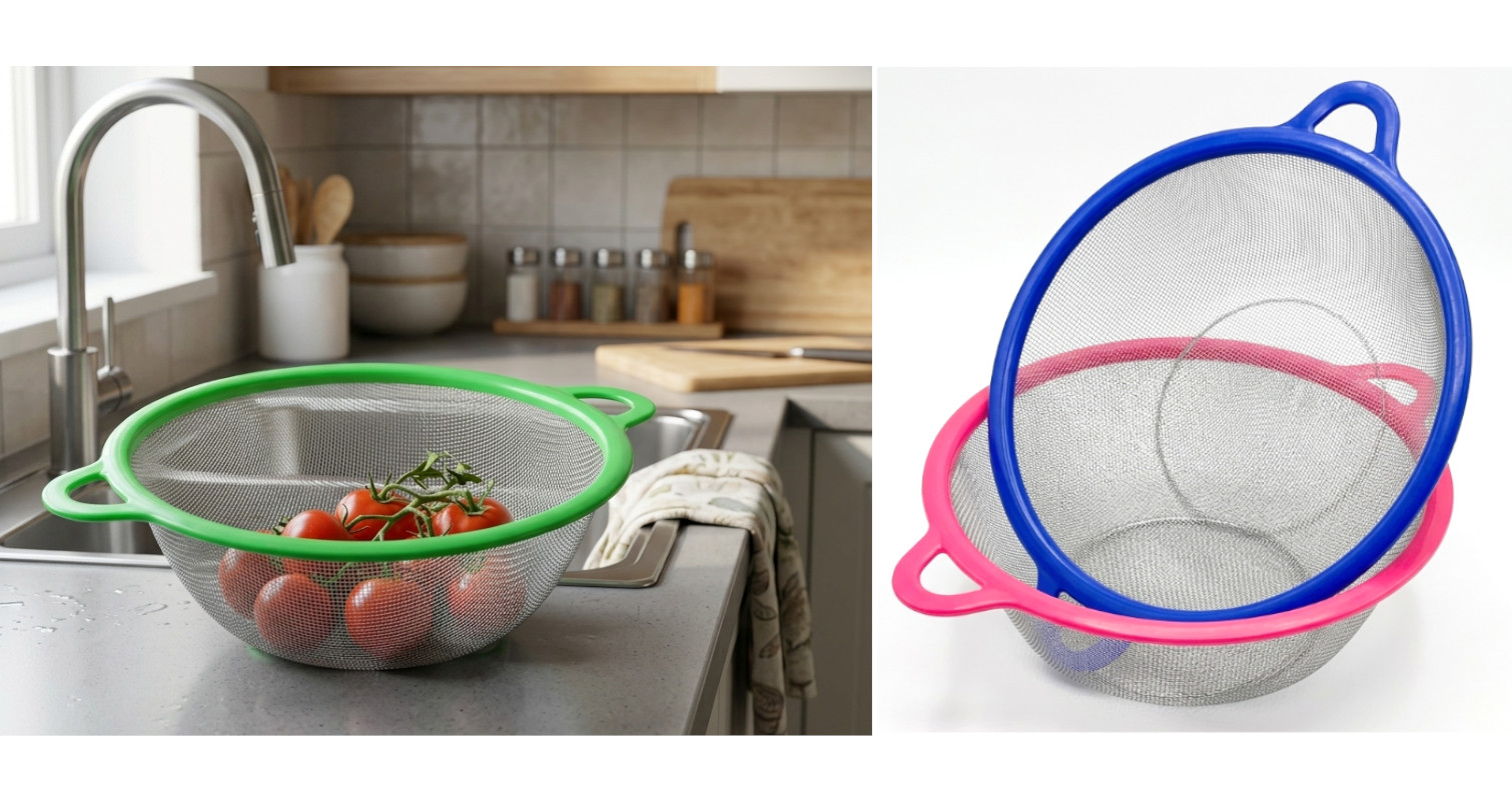 Sitko stalowe z plastikowymi rączkami 32x25x8 cm mix kolor