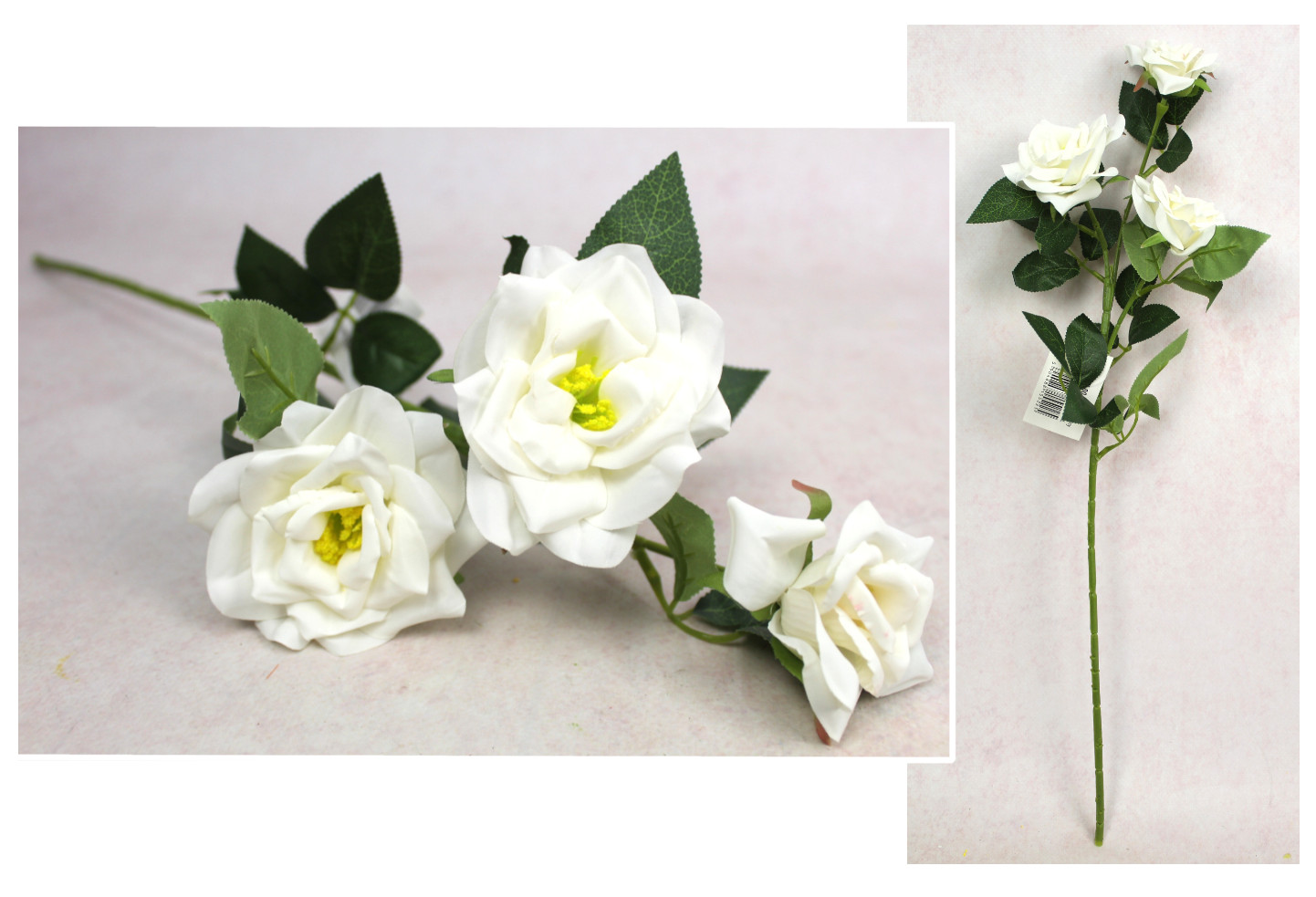 Kwiat RÓŻA wys. 55 cm (3 główki 7-9 cm) - BIAŁA