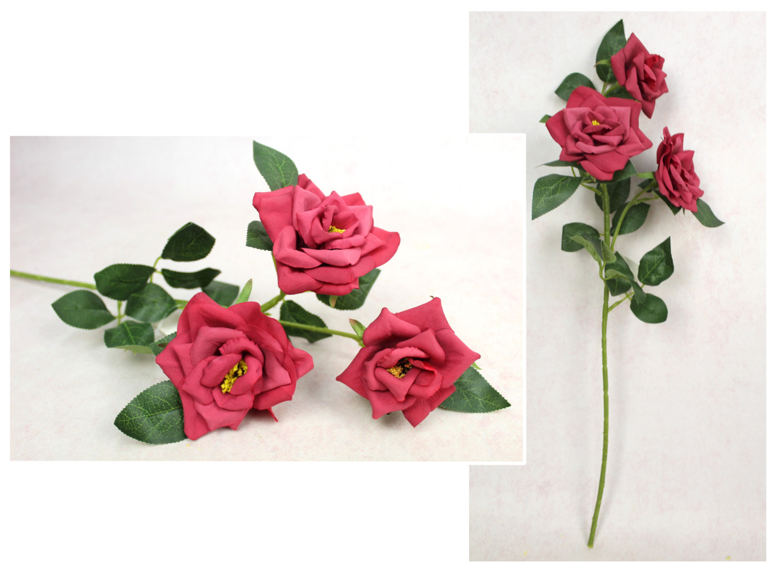 Kwiat RÓŻA wys. 55 cm (3 główki 7-9 cm) - CZERWONY