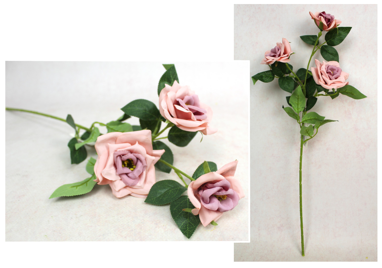 Kwiat RÓŻA wys. 55 cm (3 główki 7-9 cm) - BRUDNY RÓŻ