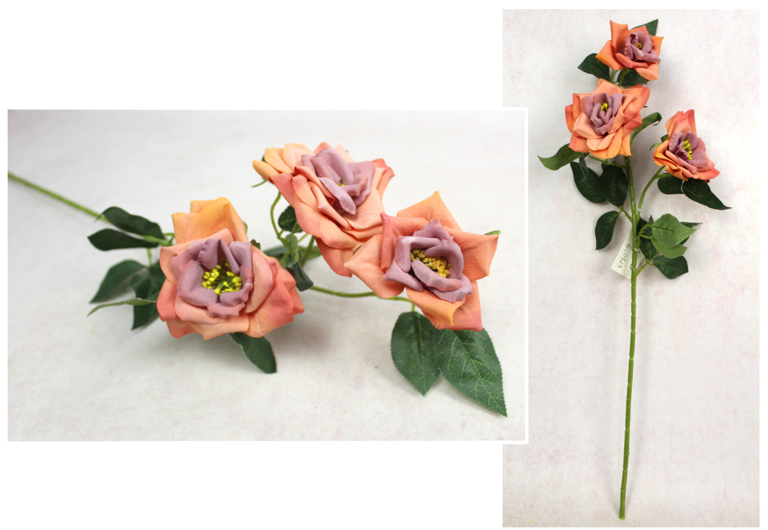 Kwiat RÓŻA wys. 55 cm (3 główki 7-9 cm) - KORALOWA