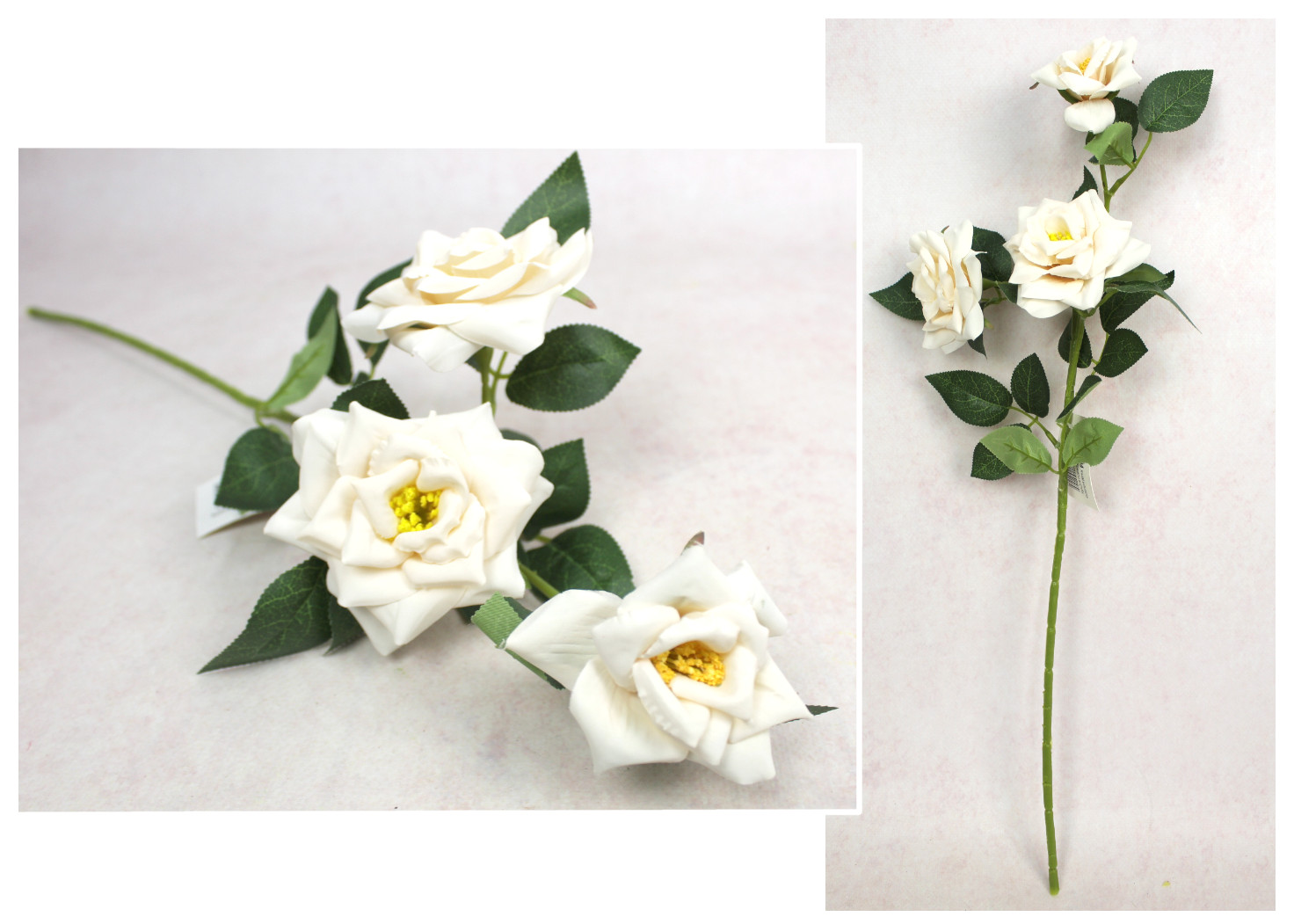 Kwiat RÓŻA wys. 55 cm (3 główki 7-9 cm) - ECRU