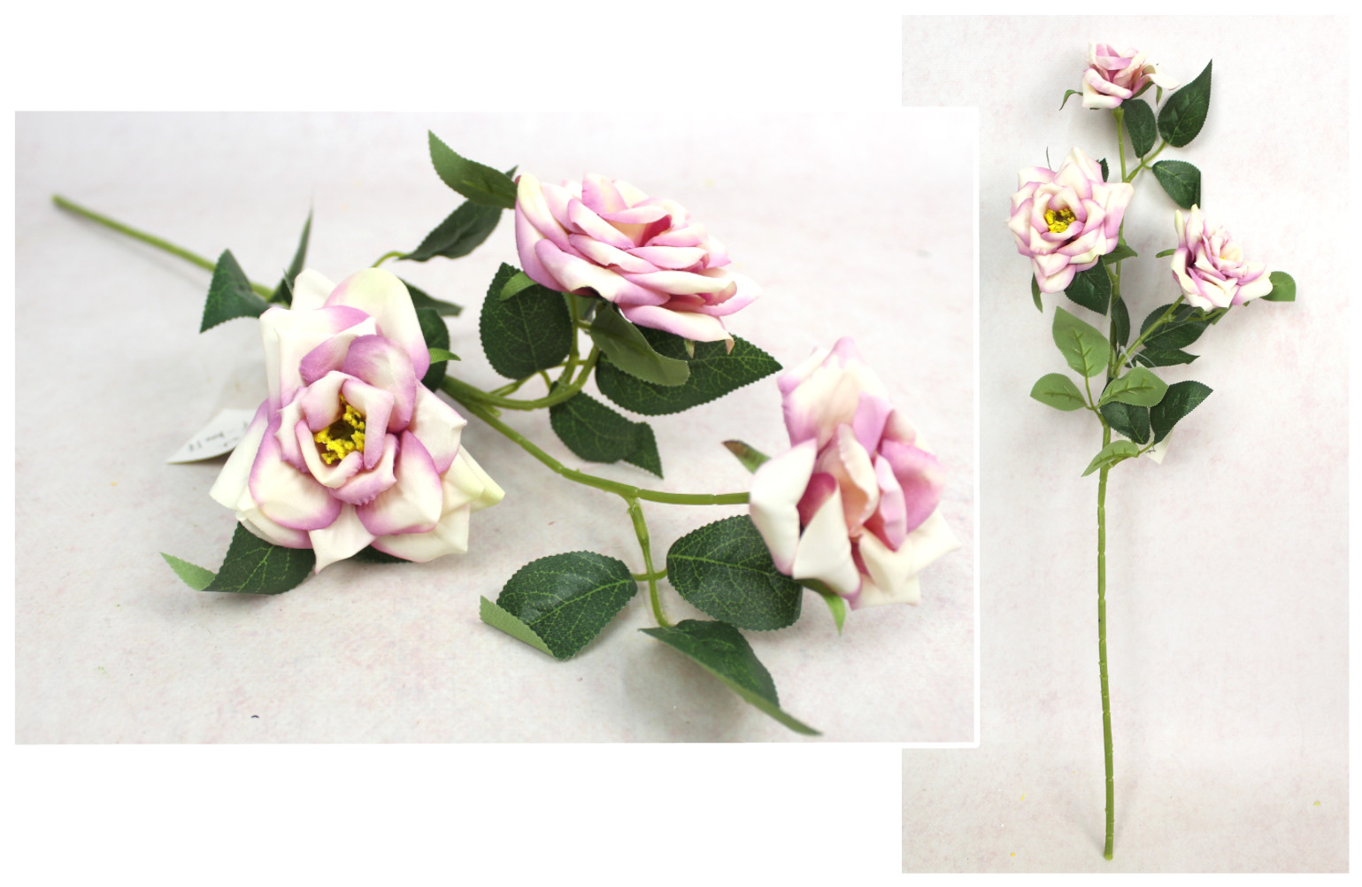 Kwiat RÓŻA wys. 55 cm (3 główki 7-9 cm) - RÓŻOWO-KREMOWY