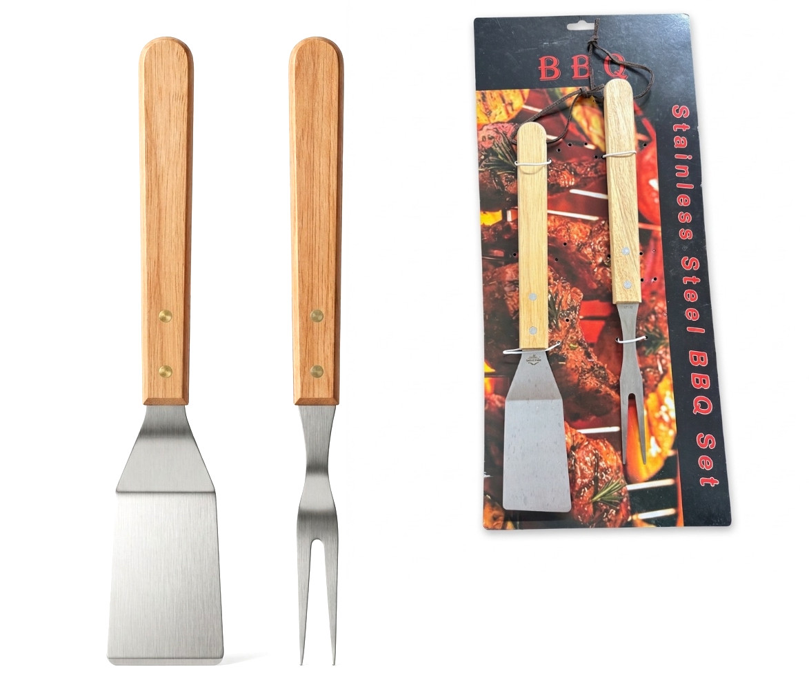 Zestaw łopatka + widelec do grilla z drewnianą rączką 34 cm