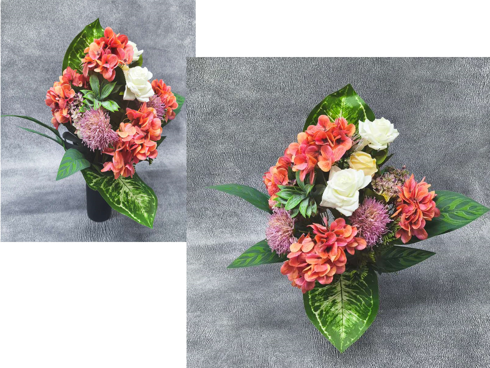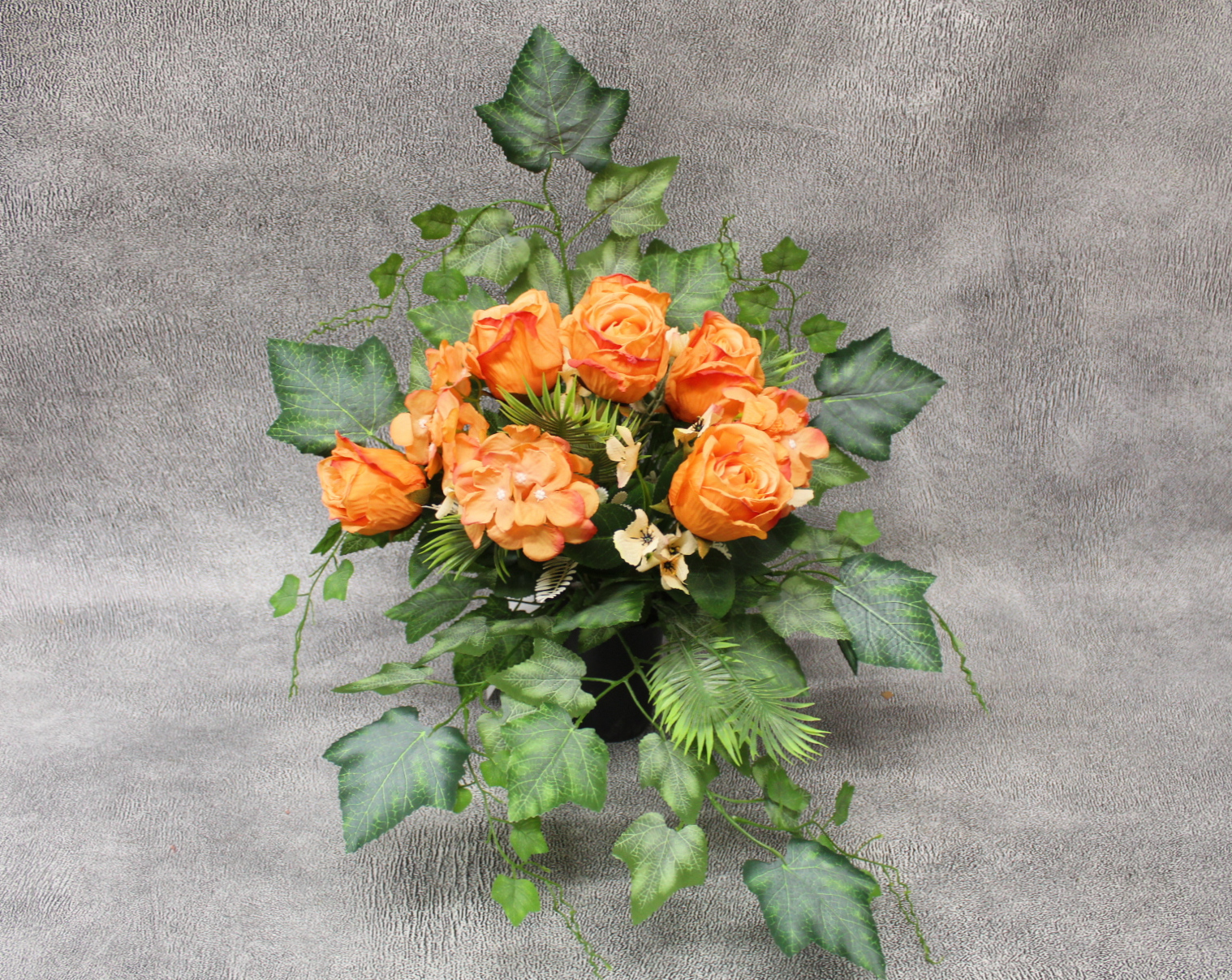 Stroik zalewany RÓŻE, HORTENSJE, DZWONKI pomarańczowy wazon (ok.55x30x55 cm) ok. 1,4 kg