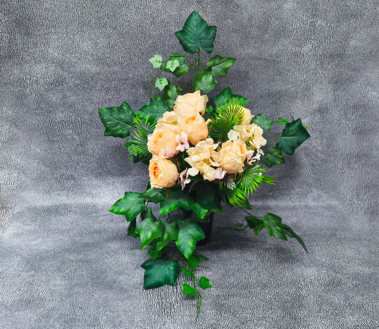 Stroik zalewany WAZON róże BRZOSKWINIOWE + drobne kwiatki i liście klonu (ok. 55x50x40 cm) ok. 1,5 kg