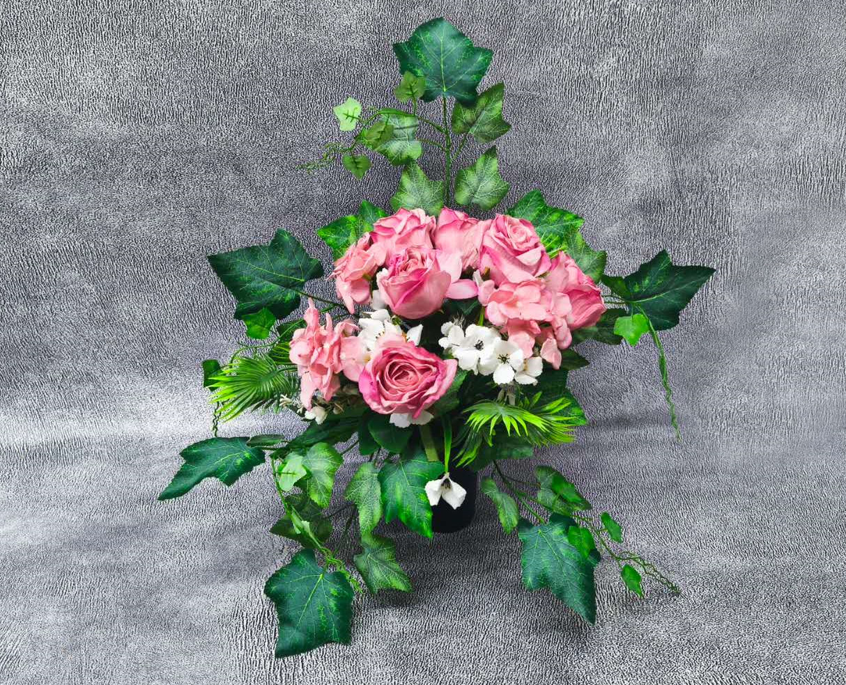 Stroik zalewany RÓŻE, HORTENSJE, DZWONKI różowy wazon (ok.55x30x55 cm) ok. 1,4 kg