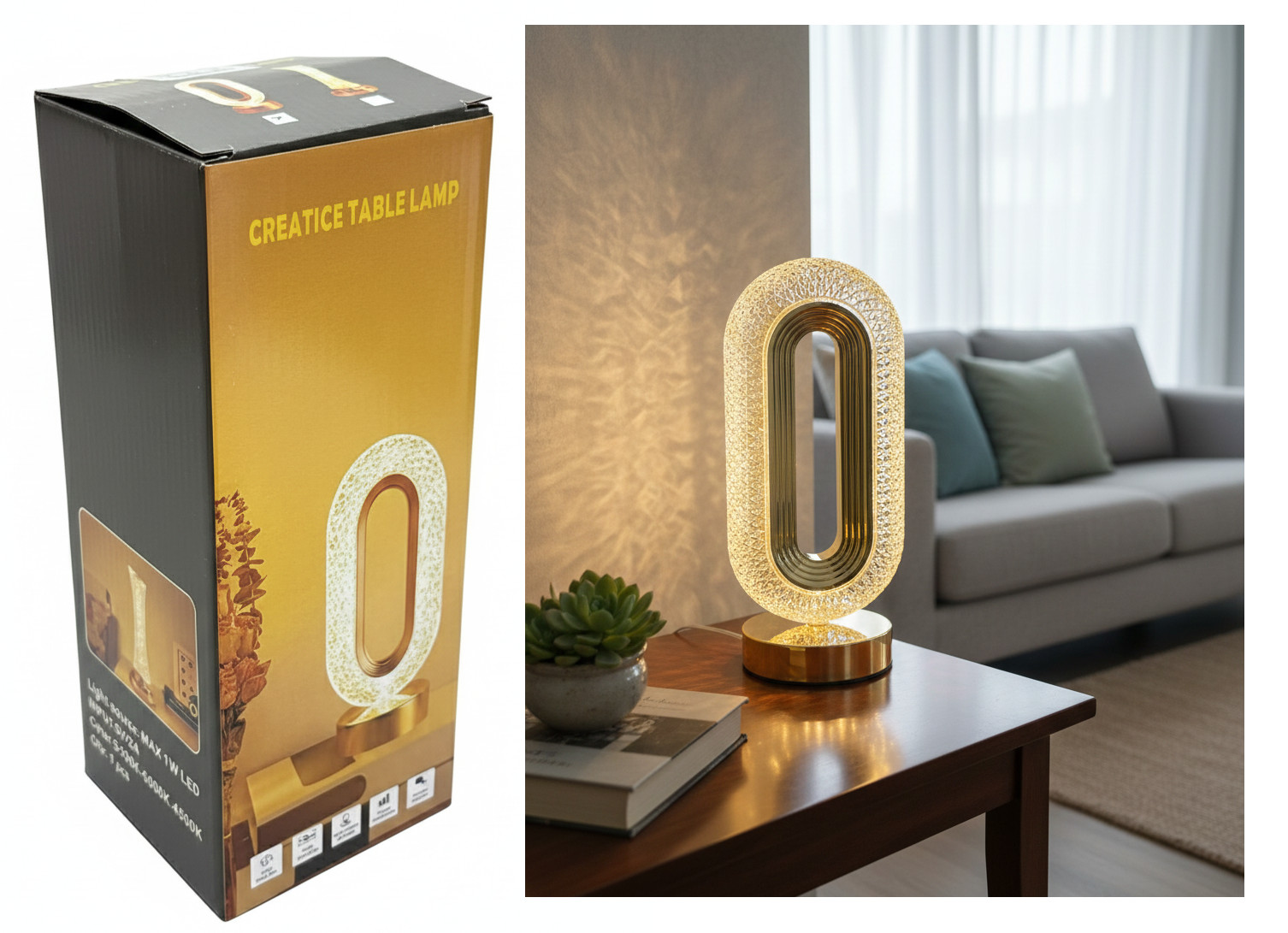 Lampa LED dotykowa stołowa, do sypialni 3-stopniowa, bezprzewodowa ELIPSA 26x12 cm ZŁOTA