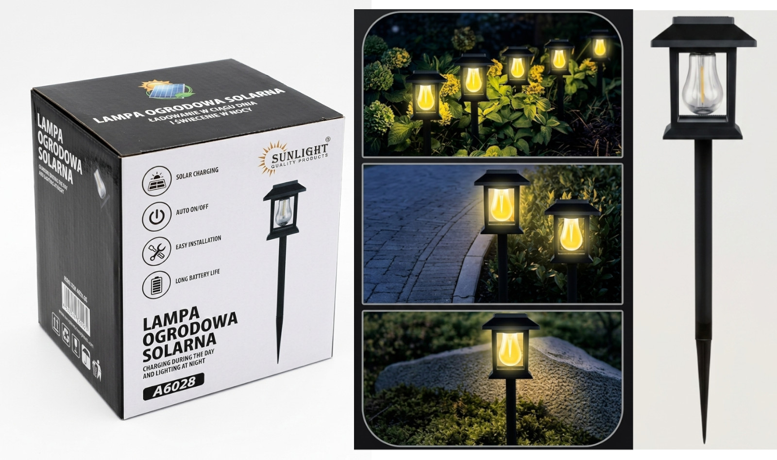 Lampa solarna ogrodowa LED Latarnia z żarówką światło ciepłe 38x8,5 cm - 1 szt