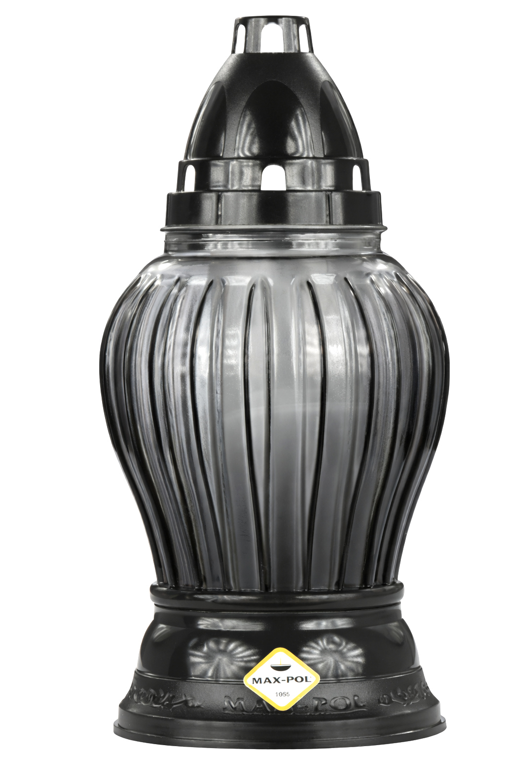 Znicz szklany 1105 dymiony grafit w pasy CZARNY 24 cm - 1 szt