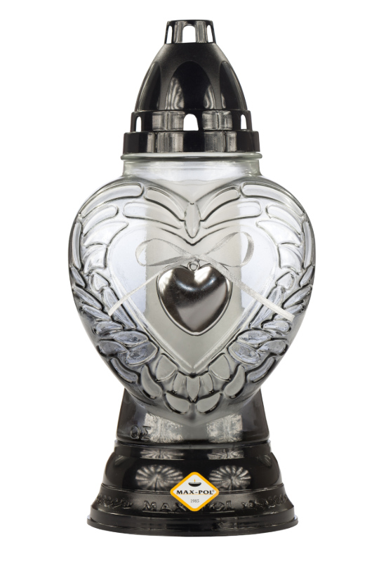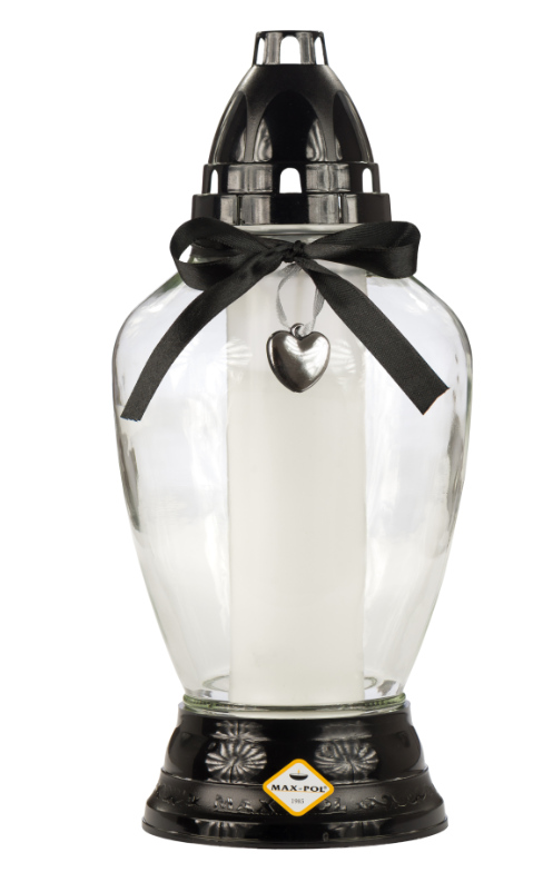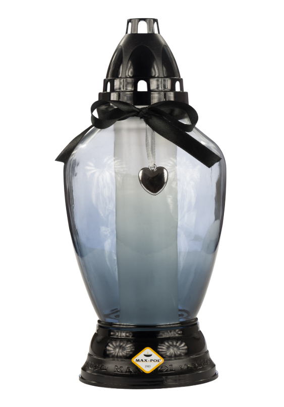Znicz szklany 1117 AP2 grafitowy z aplikacją SERCE CZARNY 26 cm - 1 szt