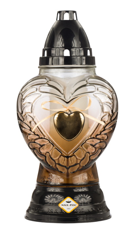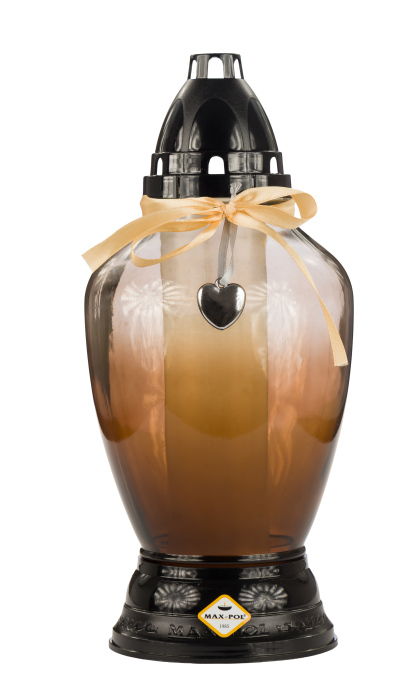 Znicz szklany 1117 AP1 brązowy z aplikacją SERCE CZARNY 26 cm - 1 szt
